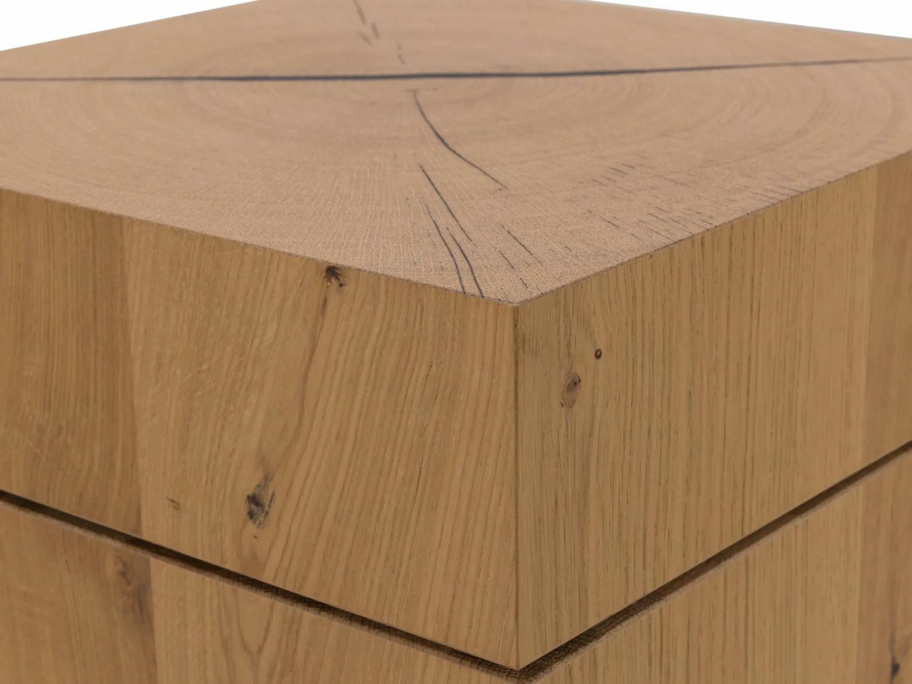Der Beistelltisch Versus aus dem Hause VOGLAUER wird die Natur ein Stück näher in Ihr Zuhause bringen. Das natürliche Design ist ein absoluter Hingucker und ist gleichzeitig der ideale Begleiter für Ihren Wohnbereich. Der Tisch ist aus Wildeiche rustico gefertigt und mit einer drehbaren Platte aus Hirnholzfurnier versehen.