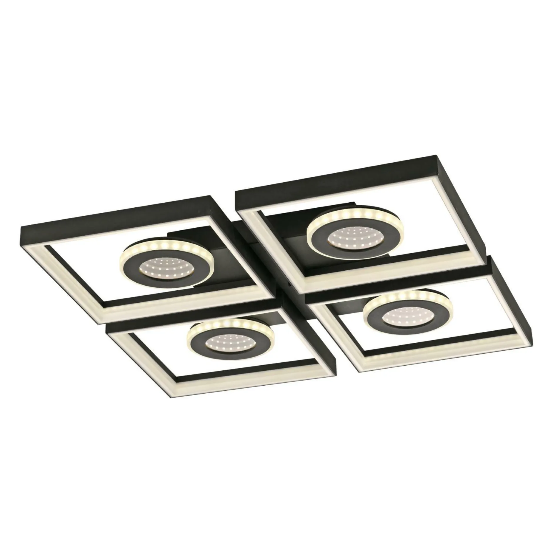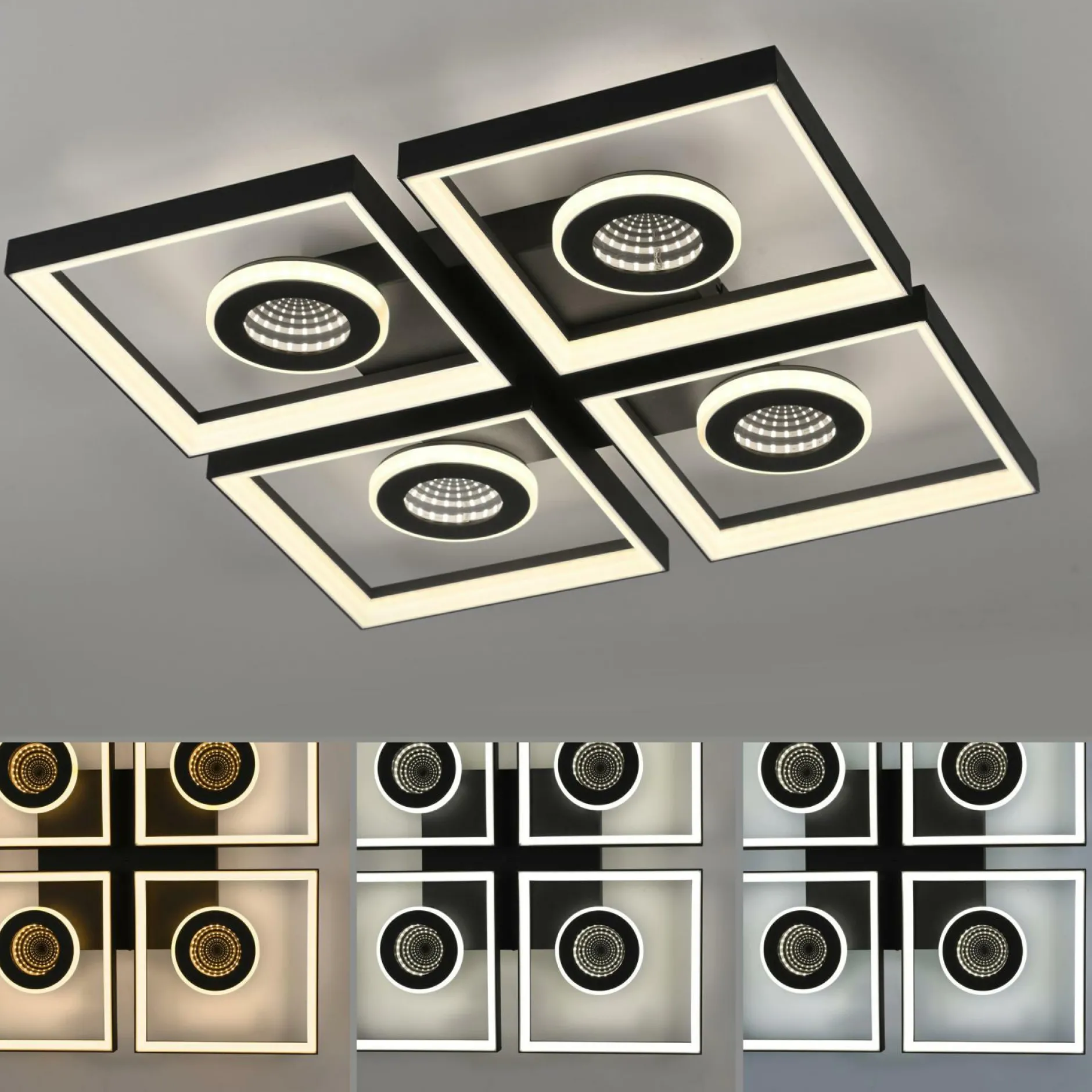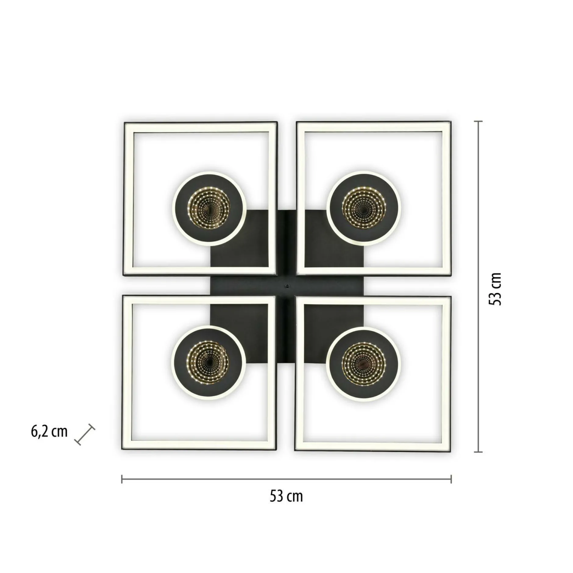 Lassen Sie mit dieser Deckenleuchte Ihre Einrichtung erstrahlen. In der Deckenlampe kommen alle Qualitäten und Besonderheiten, die die Marke Paul Neuhaus ausmachen, zusammen. Das hübsche Design der Leuchte fügt sich perfekt in jede Einrichtung ein und spendet dabei gemütliches Licht für ein tolles Wohnambiente. Die Lampe ist für die Verwendung von Leuchtmitteln mit LEDF-Sockel konstruiert. Sie hat sowohl ein Breitenmaß von insgesamt 53 cm als auch ein Längenmaß von 53 cm und ein Höhenmaß von 6,2 cm. Ihr persönliches Wohlfühlkonzept wird durch das moderne Design zusätzlich bereichert. Auch auf die Materialqualität legt der Hersteller besonderen Wert und verwendet für die Deckenlampe Metall. Die Deckenlampe kann sich perfekt in Ihr Zimmer integrieren und erschafft ein wunderschönes Flair. Sie harmoniert aufgrund ihrer hervorragenden Optik mit beinahe jedem Einrichtungsstil und kreiert dadurch eine Atmosphäre zum Wohlfühlen. Die Deckenlampe besticht nicht nur mit einem schönen Licht, sondern erfüllt auch eine dekorative Funktion.
