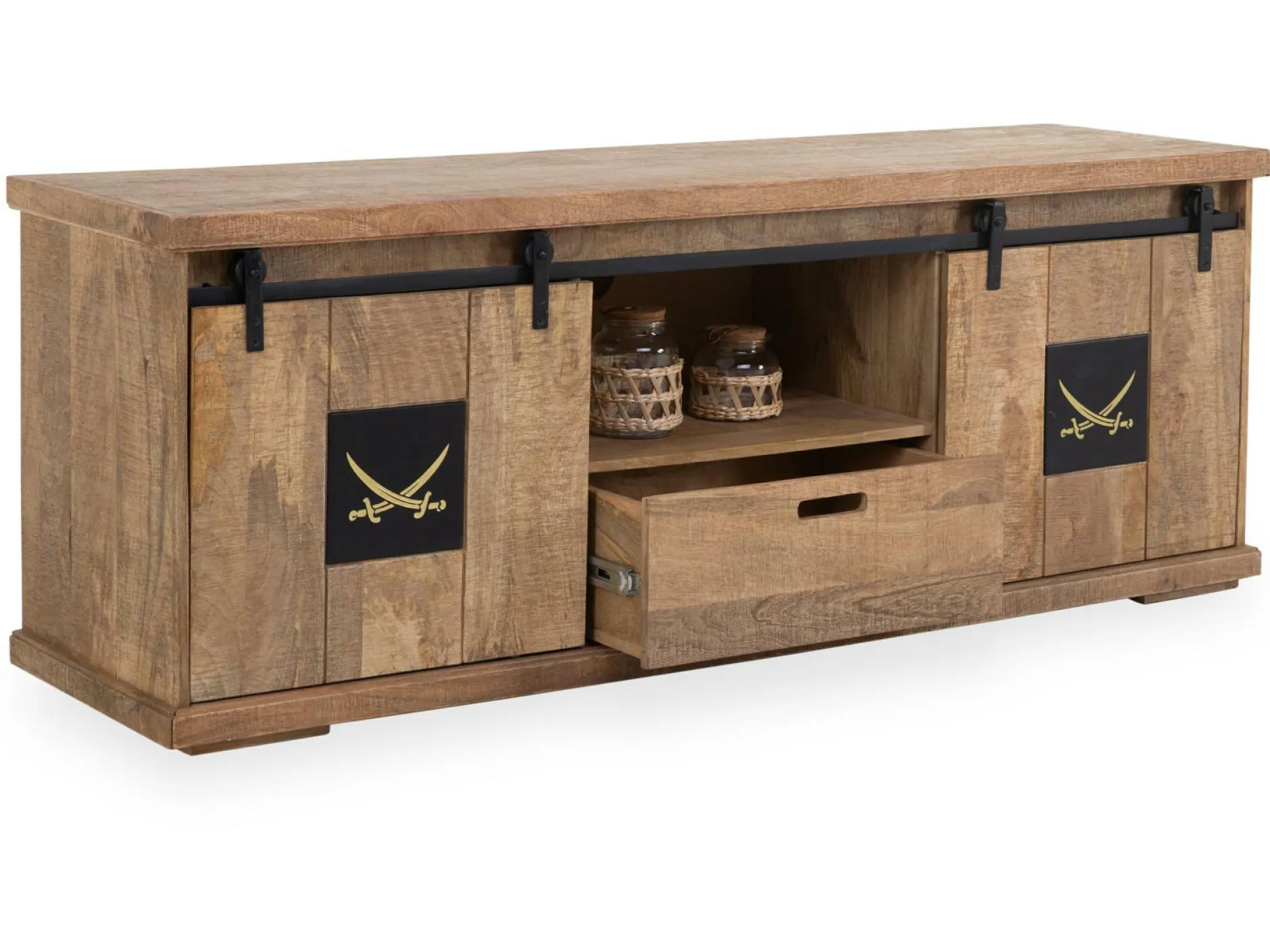 Dieses Lowboard ist ein echter Gewinn für alle Liebhaber ästhetischer Möblierung. Hervorragende Gestaltung und ein überzeugendes Wohnerlebnis zeichnen das Modell HALMSTAD in Markenqualität von SANSIBAR aus. Die Kommode aus Massivholz kann auch optisch durch ihr modernes Design punkten. Sie hat eine Breite von 158 Zentimetern, eine Gesamthöhe von 60 Zentimetern sowie eine Tiefe von 45 Zentimetern. Das Möbel HALMSTAD verleiht Ihrem Zuhause ein behagliches Flair.