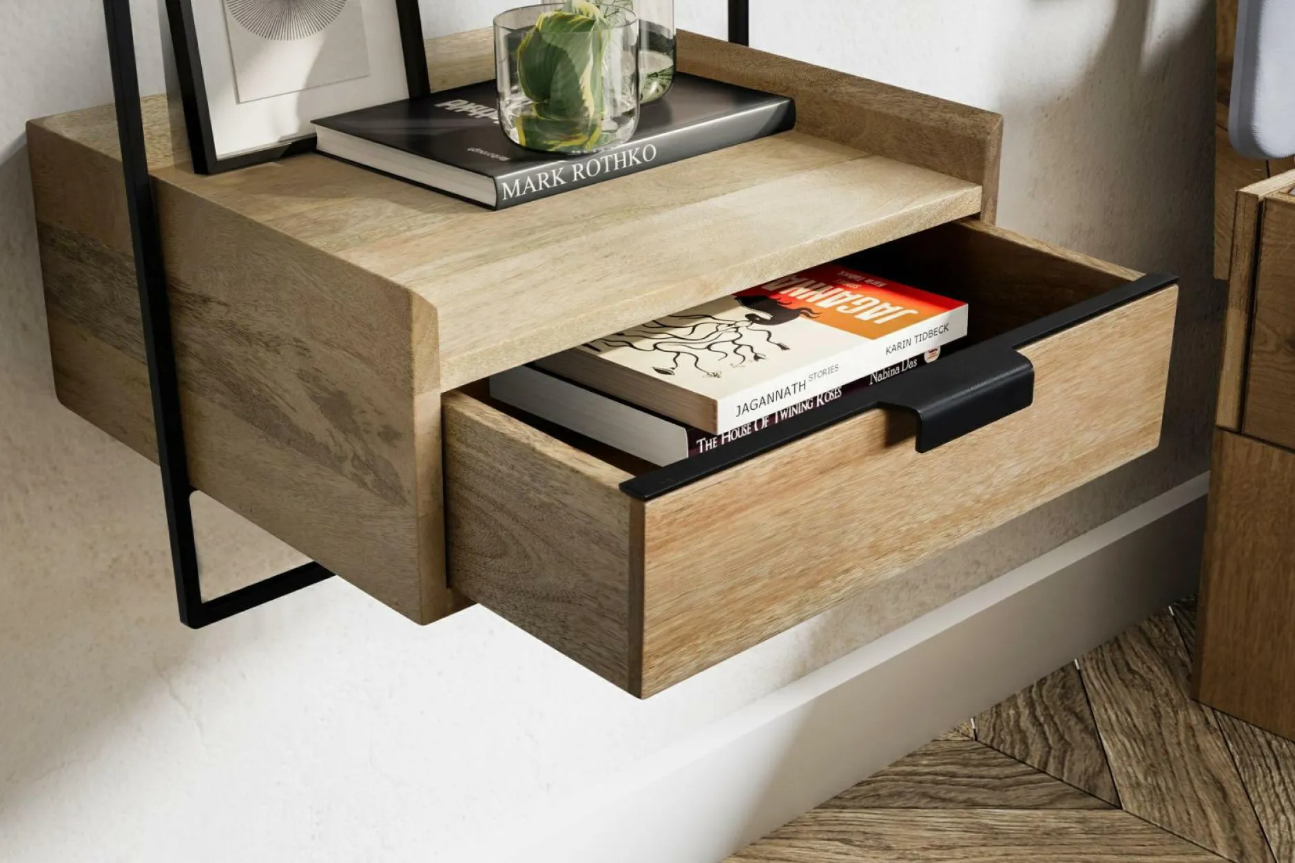 · Gute Nacht – Abends im Bett noch gemütlich ein Buch lesen & danach ins Reich der Träume verabschieden, Nachtschränkchen eine Ablage & eine Schublade.