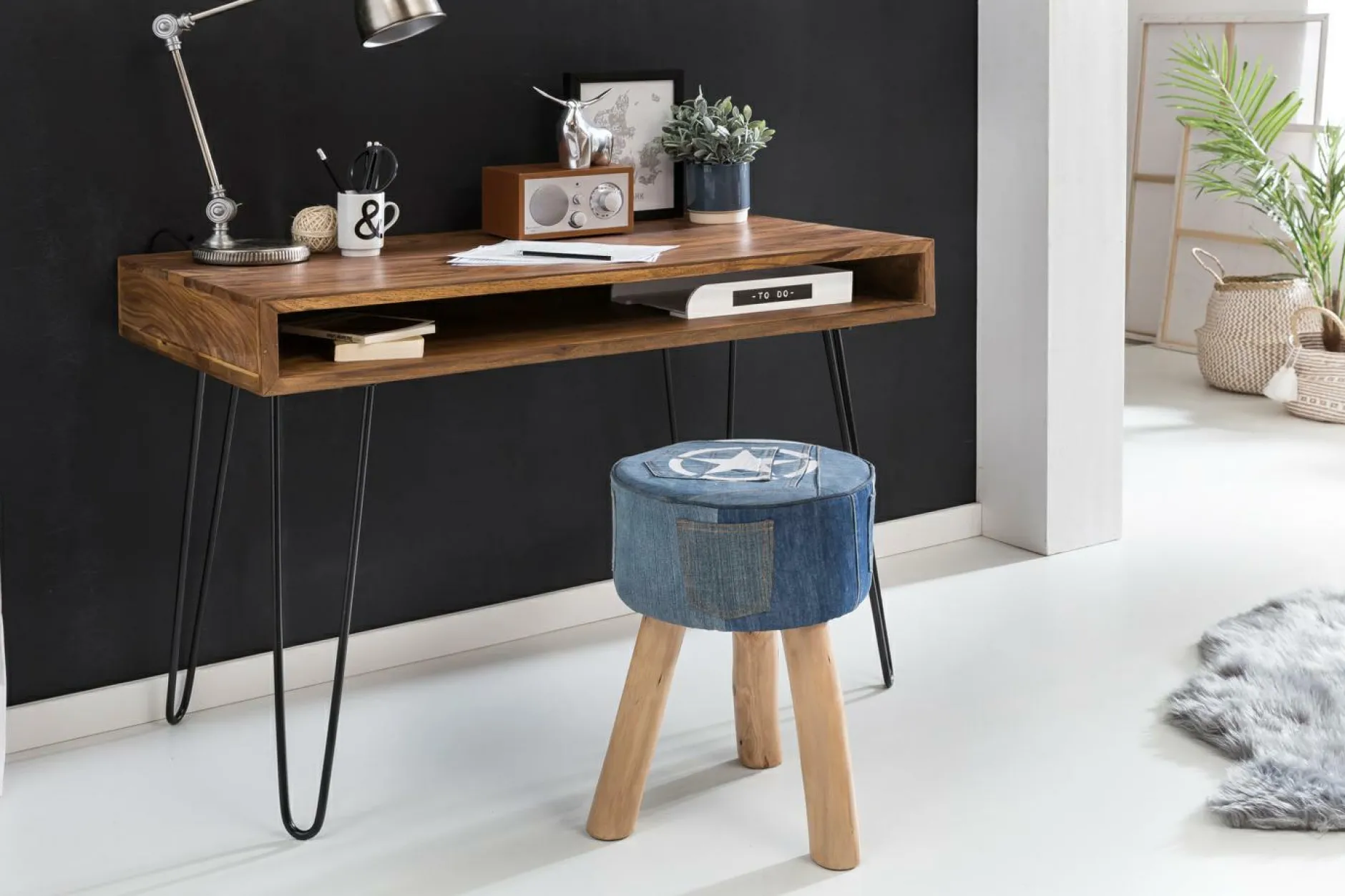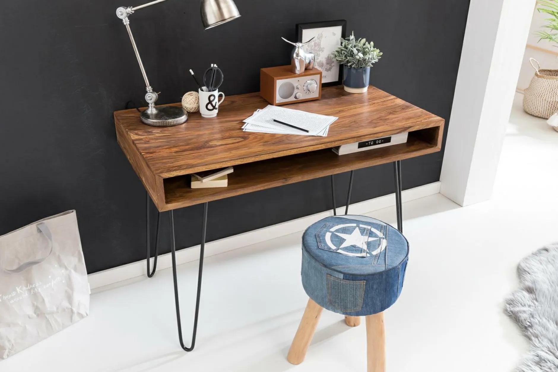 · Lieferumfang – Ein Schreibtisch ohne Dekoration, Leicht verständliche Montageanleitung, Montagematerial und -werkzeug