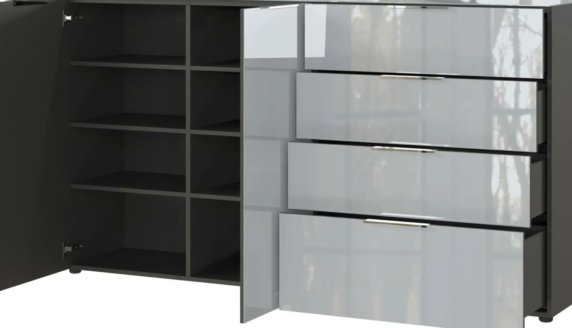 · mit zwei Türen und vier Schubladen