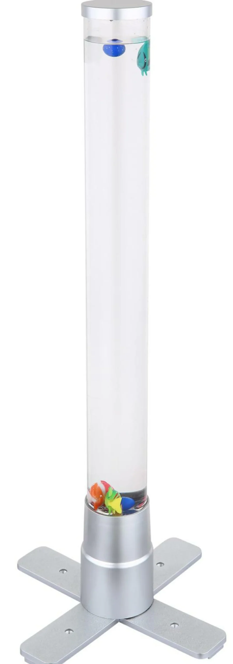 · Diese tolle Stehleuchte der Serie Mendoza begeistert durch Ihr einzigartiges Design. Aus einem Standbein ragt ein zylinderförmiges Gefäß mit einer Höhe von 61cm inklusive Dekorationsfische welche durch aufsteigende Luftblasen sich auf und ab bewegen. Durch ein RGB LED Leuchtmittel im Standfuß scheint das Wasser in unterschiedlichen Farben und sorgt für einen tollen Effekt.