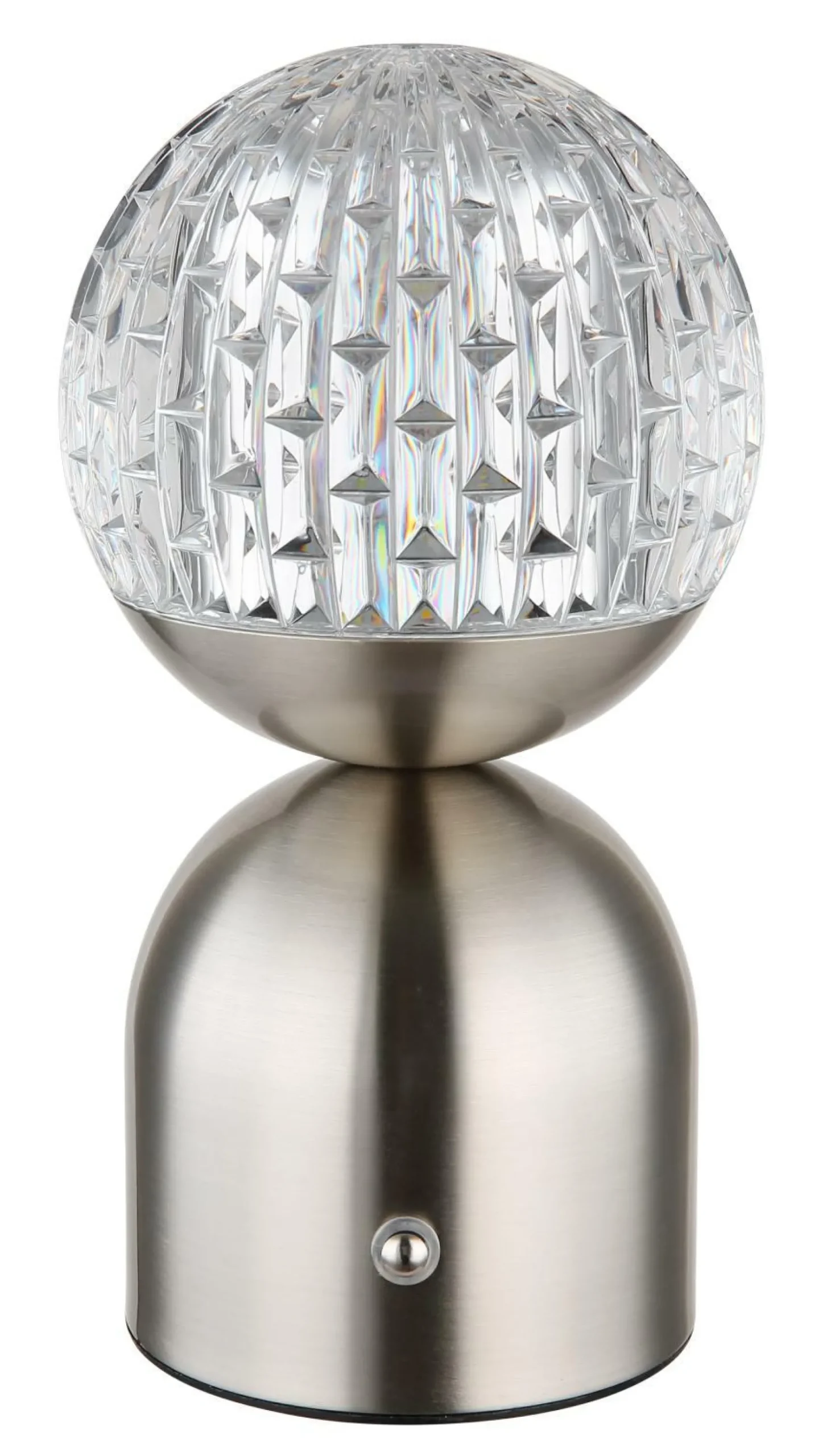 · Tauchen Sie Ihren Raum in ein faszinierendes Licht mit der JULSY Tischleuchte. Das matte Nickel-Metall in Kombination mit dem klaren Acryl und dem funkelnden Kristalleffekt verleiht dieser Leuchte eine moderne Eleganz. Mit dem stufenlosen Touchdimmer können Sie die Helligkeit nach Belieben anpassen und die gewünschte Farbe fixieren. Das praktische USB-Ladekabel ermöglicht eine bequeme Aufladung des eingebauten 1200mAh-Akkus, der in nur ca. 4 Stunden vollständig aufgeladen ist. Mit einem Durchmesser von 105mm und einer Höhe von 200mm passt die JULSY perfekt auf jeden Tisch. Die Leuchte enthält eine energieeffiziente LED mit 2.5W, die eine Helligkeit von 243lm (Source) und 173lm (Output) erzeugt. Wählen Sie zwischen den drei Farbtemperaturen 2700K, 4000K und 6500K und schaffen Sie die perfekte Atmosphäre für jeden Anlass. Erleben Sie mit der JULSY Tischleuchte einzigartiges Design und faszinierendes Licht.