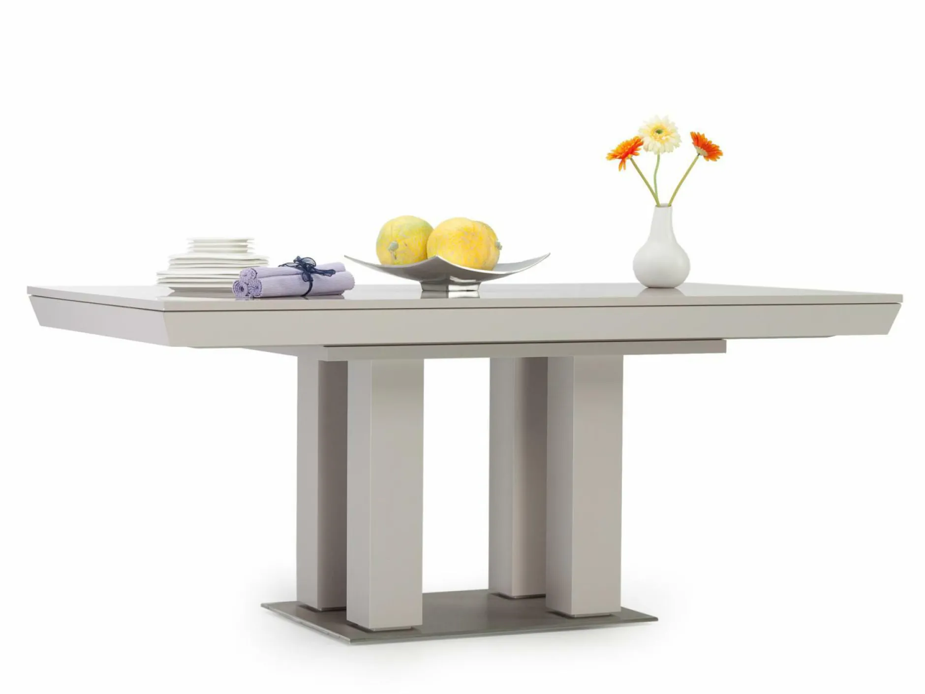 Mit dem Esstisch Mondo Prisma Plus erhalten Sie einen hochwertigen Tisch, der sich zu vielen Elementen kombinieren lässt. Der Sockel besteht aus Edelstahl und sorgt für den festen Stand des Tisches. Er ist auf ca. 280x100cm ausziehbar und bietet somit Platz für die ganze Familie. Das Gestell zeigt sich in einem rosabeigen matten Lack und die Platte in einem rosabeigen Hochglanz Lack.