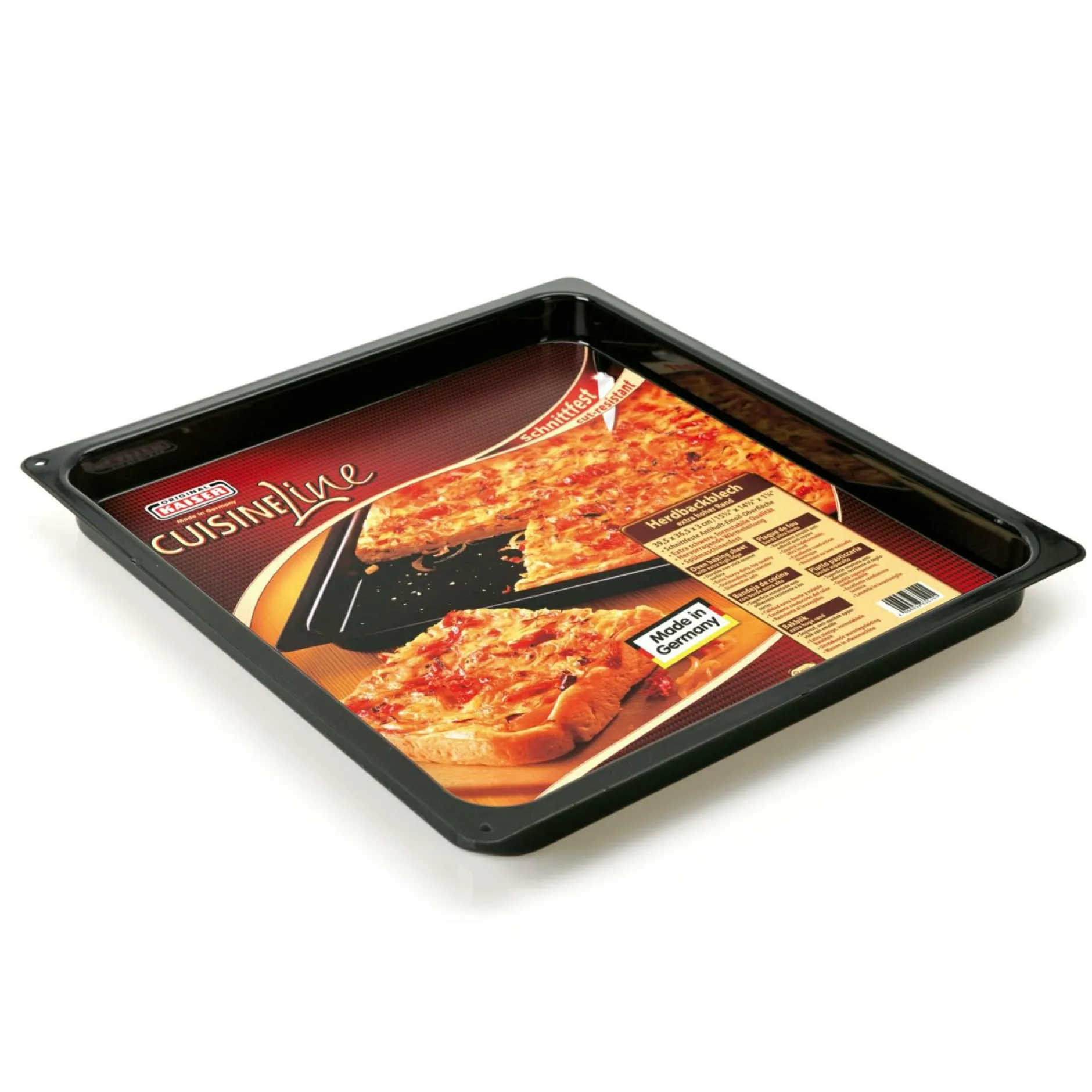 Dieses praktische Herdbackblech Cuisine Line aus dem Hause WMF eignet sich optimal, um Kuchen, Aufläufe oder diverse andere Gerichte im Ofen zu backen oder zu braten. Das Blech ist mit einer robusten Antihaftbeschichtung ausgestattet, so dass es besonders langlebig und robust ist. Der hohe Rand verhindert zudem beim Überlaufen eine Verschmutzung des Ofens.