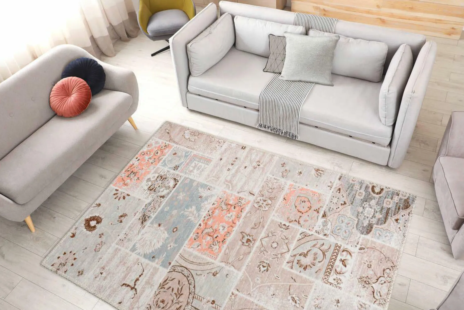 · Mit diesem Retro-Teppich im Design des Vintage bekommen Räumlichkeiten spielend leicht einen Charakter aus vergangenen Tagen. Der Läufer fügt sich charmant in das Gesamtbild ein und schafft dadurch ein angenehmes Raumklima. In Kombination mit dem stilvoll eingerichteten Innenraum wird er automatisch zum Hingucker und Highlight. Zuweilen erfindet er sich stets neu und lädt so problemlos zum Verweilen ein. Mit einem so erzeugten Ambiente des Wohlfühlens ist er in seiner Vielfalt und Einsatzmöglichkeiten einzigartig. Den Flachflor gibt es in verschiedenen Ausführungen. Dies ermöglicht ihm sich ganz den Wünschen und Bedürfnissen nach Größe, Form und Design zu richten. Maschinell hergestellt aus Baumwolle und Polyester weist er ein hohes Maß an Qualität auf. Diese Qualität machen ihn widerstandsfähig und pflegeleicht. Die hochwertige Verarbeitung sorgt zudem für einen angenehmen Laufkomfort und dämmt die Schrittlautstärke. Die Eignung zur Verwendung auf Fußbodenheizungen bringt der Teppich ebenfalls mit sich und wird so zum Alleskönner zwischen vier Wänden.