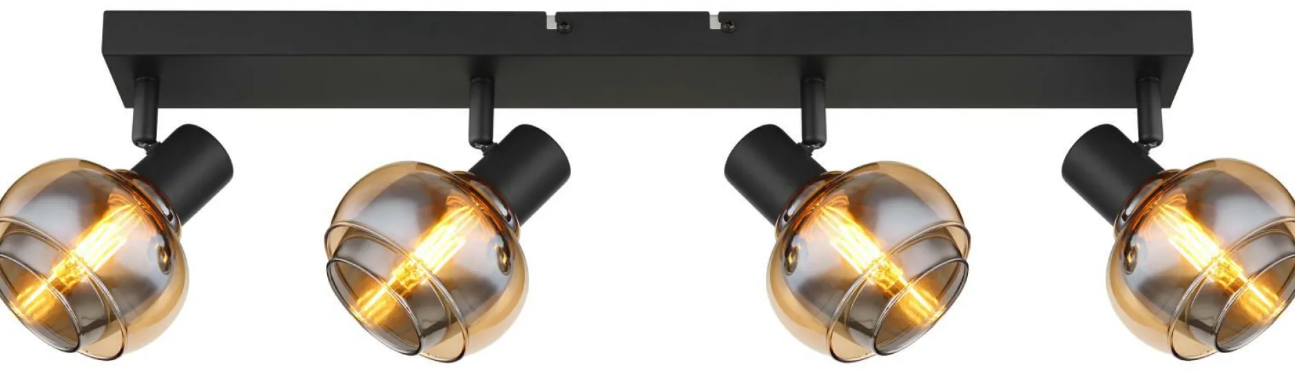 · Tauchen Sie Ihre Räume in ein faszinierendes Licht mit diesem Strahler und 4xE14 Fassungen! Das schwarzmatt lackierte Metallgehäuse in Kombination mit den Glasvarianten in Amber und Rauch erzeugt eine atmosphärische Beleuchtung. Mit einer Größe von 560x105x135mm setzt dieser Strahler ein beeindruckendes Statement in jedem Raum. Die E14 Fassung ermöglicht Ihnen bis zu einer maximalen Leistung von 40 Watt, selbst über Lichtfarbe und Helligkeit zu bestimmen. Er ermöglicht Ihnen, gezielte Lichtakzente zu setzen und schafft eine angenehme Atmosphäre.