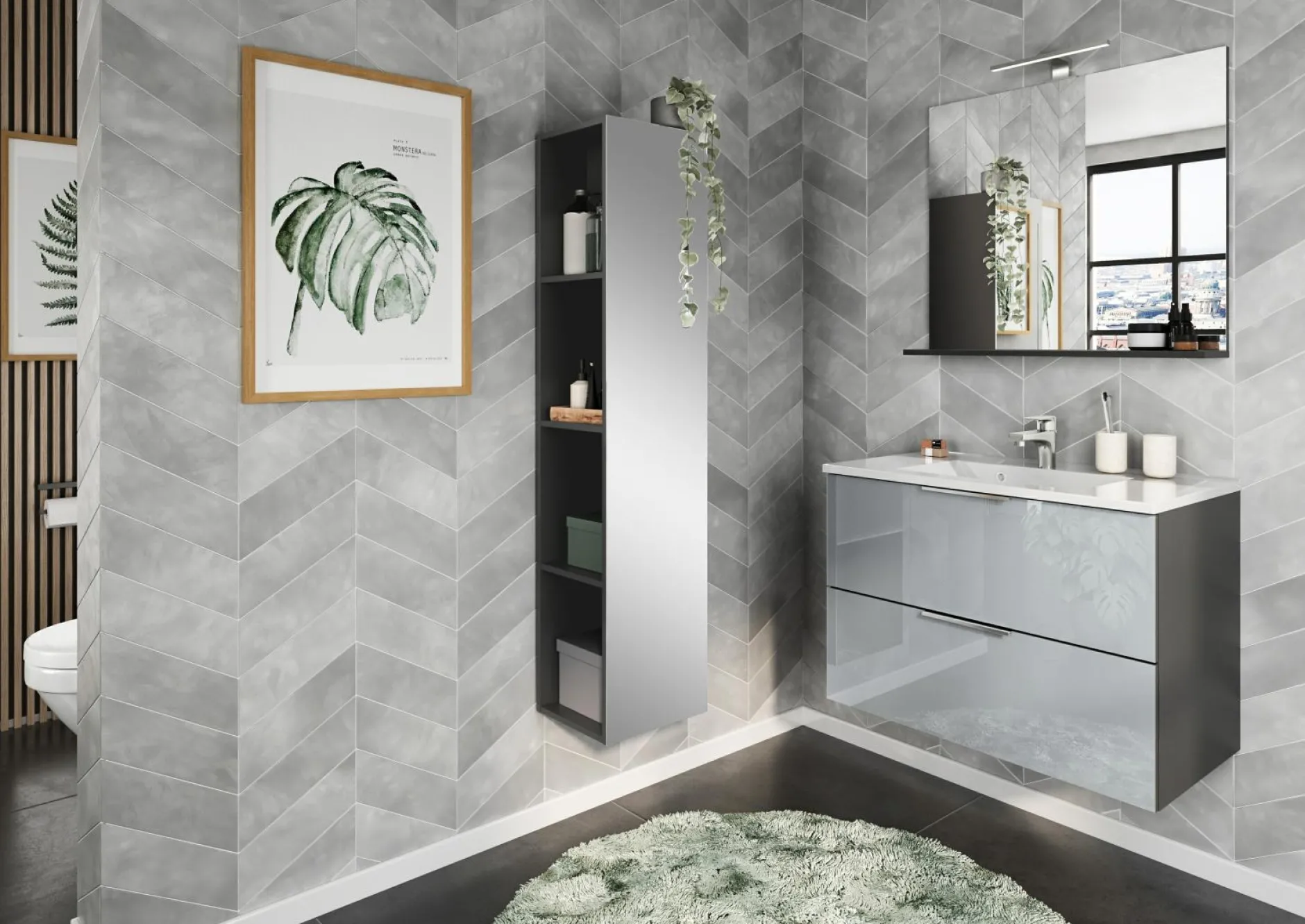 · Kratzfeste und widerstandsfähige Oberflächenbeschichtung. | Stoß- und schlagfeste Kanten. | Front(en) aus Glas. | Mineralguß-Waschbecken mit lackierter Beschichtung. | Schubladen schließen durch integrierten Dämpfer langsam, sanft und geräuschlos. | Mit Kantengriffen aus Metall. | Hängende Montage. | Umweltfreundlich, ohne Styropor verpackt. | Made in Germany.