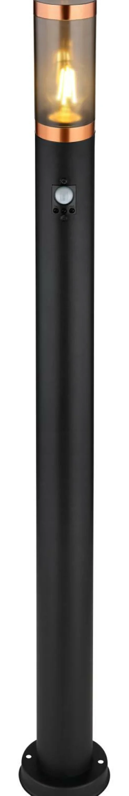 · Diese elegante Sockellampe der Serie Boston zeichnet sich durch ihr stilvolles Design und die tolle Verarbeitung aus. Die formschöne Außenlampe ist aufgrund ihrer Schutzart IP44 bestens für den Außenbereich geeignet. Dieses Modell ist aus schwarzem Edelstahl und opalem Kunststoff gefertigt und hat eine Gesamtgröße von 110 cm. Die Lampe ist mit einer E27 Fassung ausgestattet und ermöglicht Ihnen ein Leuchtmittel (max. 15W) Ihrer Wahl zu nutzen. Aufgrund ihrer Stromersparnis und Langlebigkeit empfehlen wir LED-Lampen. Ein zusätzlicher Pluspunkt ist der integrierte Bewegungsmelder (90°) mit einer Reichweite von bis zu 9 Meter. Mit weiteren Sockellampen und Wandlampen der gleichen Produktserie kann man das Bild komplettieren.