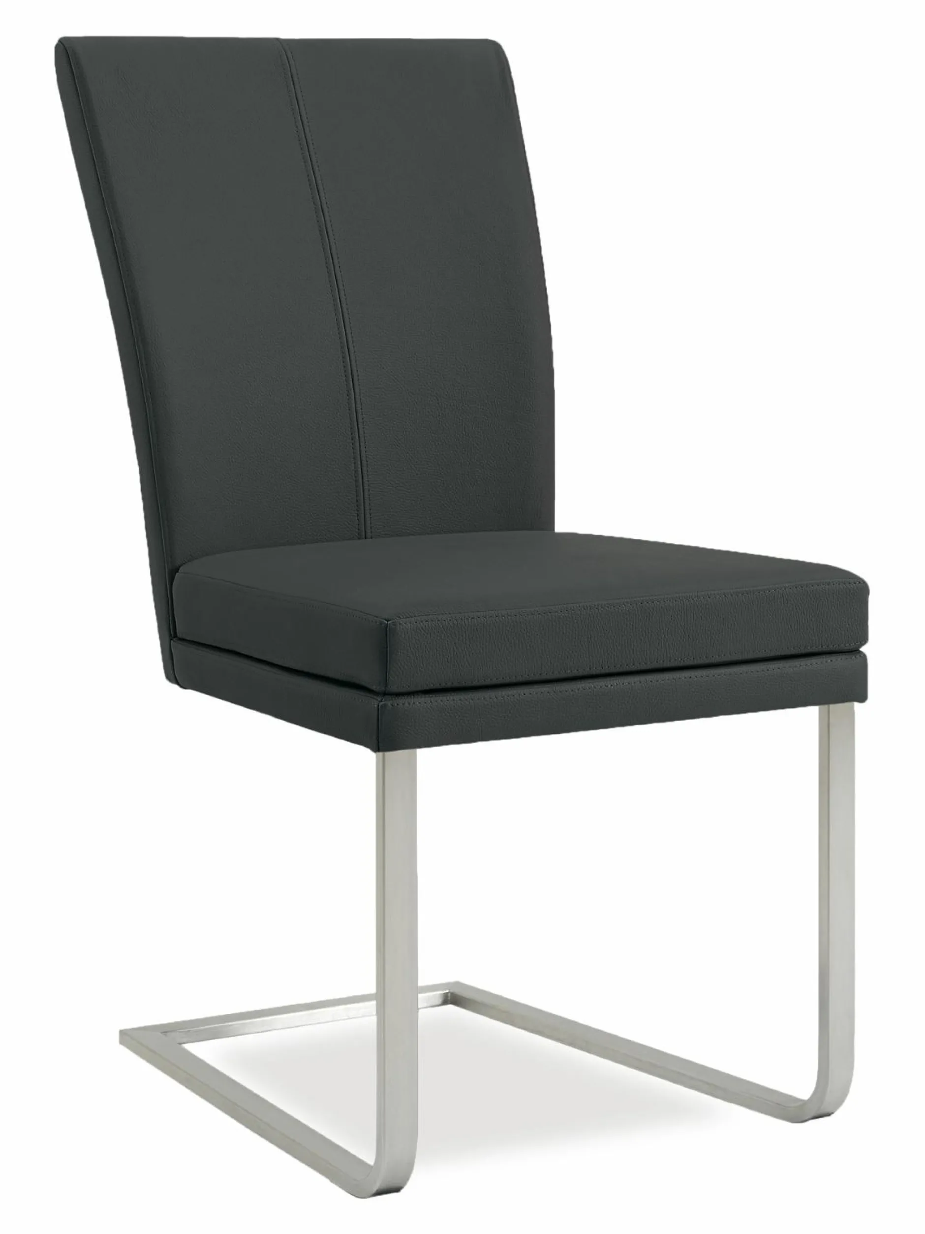 Der moderne Freischwinger Colorado der Marke NIEHOFF SITZMÖBEL überzeugt mit zeitloser Eleganz. Die Sitzfläche und die ergonomische Rückenlehne sind hochwertig gepolstert und mit dem geschmeidigen, anthrazit farbigen Leder Napoli bezogen. Das Flachstahlgestell aus Edelstahl steht in ansprechendem Kontrast zum dunklen Leder. Mit einer klassischen Formensprache wird der Freischwinger zur stilvollen und komfortablen Sitzgelegenheit. Die maximale Belastbarkeit liegt bei 140 kg.