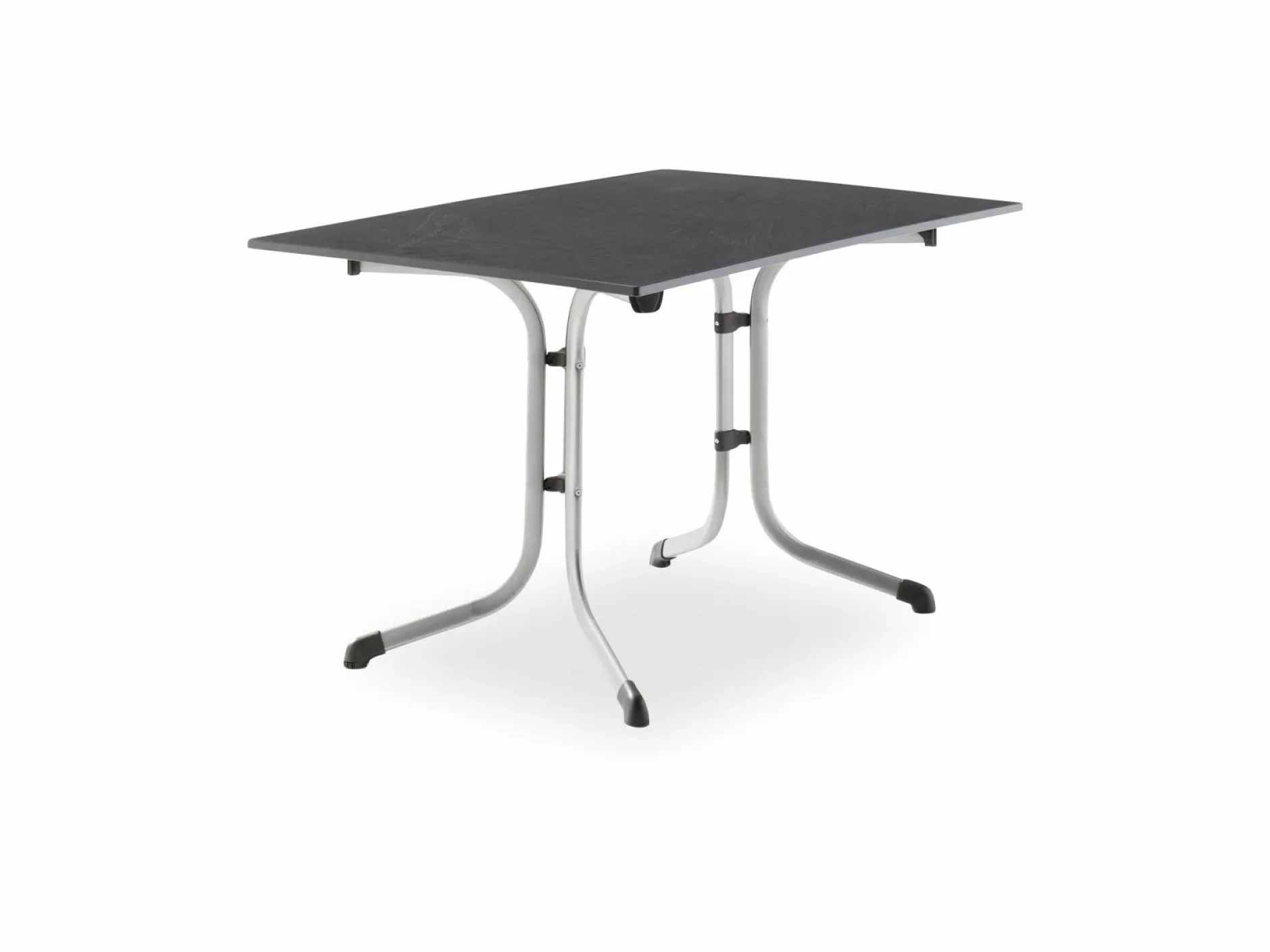 · Der Boulevard-Klapptisch 3160-50 hat ein graphitfarbenes Gestell aus polyesterbeschichtetem Profil-Stahlrohr mit einer Rohrstärke von 35 x 28 mm und eine formschöne vivodur®-Schieferdekorplatte in anthrazit. Der Tisch hat eine Größe von 120x80cm. Durch die Polyesterbeschichtung wird das Gestell unempfindlich gegen Witterungseinflüsse. Die Höhe des Tisches beträgt ca. 73 cm. Damit der Tisch auch auf unebenen Flächen einen festen Stand hat, wurde er mit einem Höhenausgleich ausgestattet. Durch seine Klappfunktion ist der Tisch sehr einfach in der Handhabung. Ein weiterer Pluspunkt für diesen Artikel ist, dass er montagefrei angeliefert wird. So können Sie den Tisch sofort nach Erhalt problemlos in Gebrauch nehmen. Der Tisch lässt sich ideal mit Möbeln aus dem SIEGER-Sortiment kombinieren. Zudem profitieren Sie bei diesem Artikel von der jahrzehntelangen Erfahrung die SIEGER bei der Herstellung von Gartenmöbeln vorweisen kann.