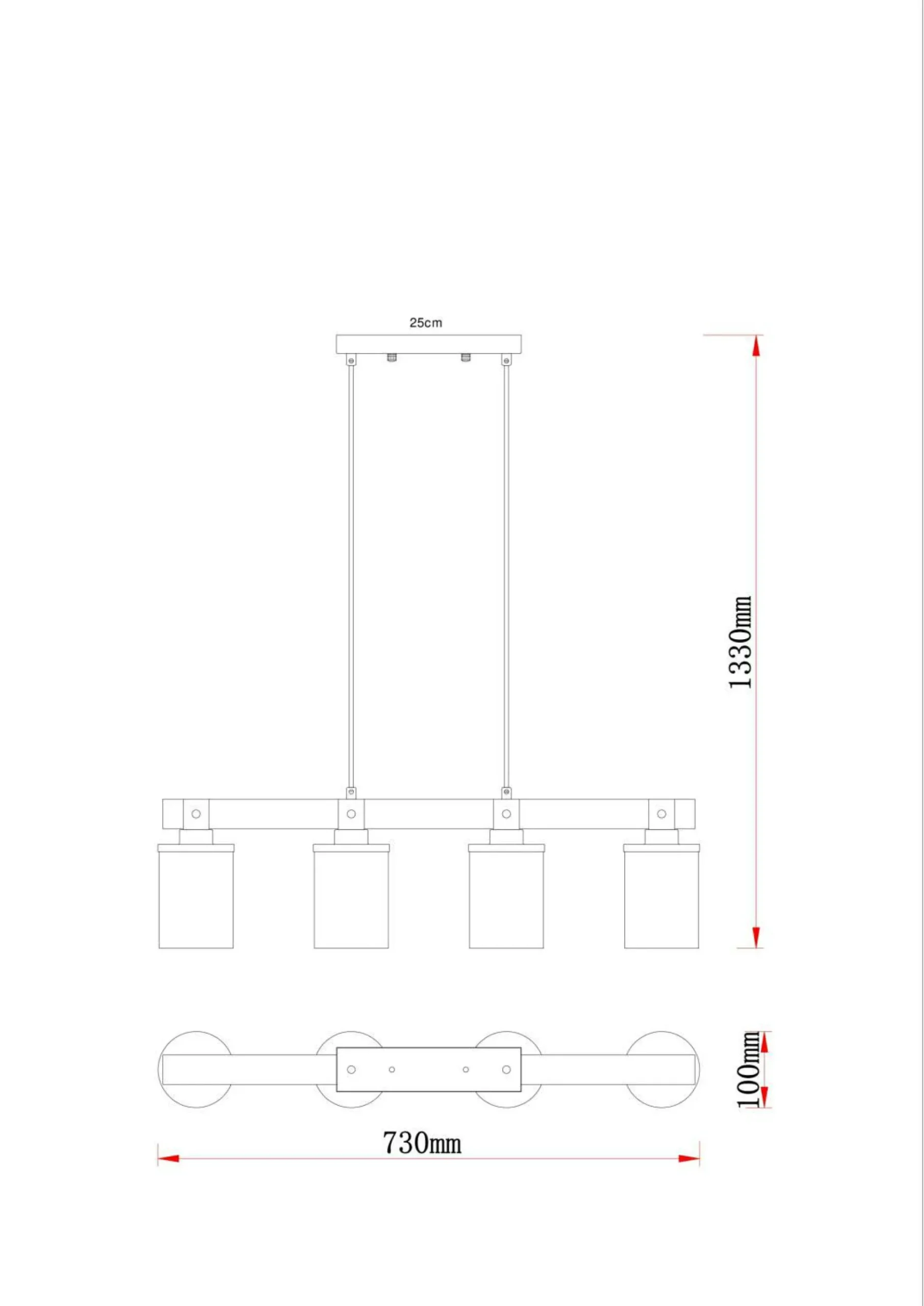 · Diese schöne Hängeleuchte begeistert durch tolles Design. Aus einer schmalen Deckenbefestigung verlaufen zwei schwarze Kabel zu einem 73cm langen Holzstamm. An dem Holzgerüst befinden sich 4 E27 Fassungen mit jeweils einem rauchfarbigen Schirm in Form eines Zylinders (Ø10cm).  Durch die freie Auswahl der Leuchtmittel können Sie, bis zu einer maximalen Leistung von 60 Watt, selbst über Lichtfarbe oder Helligkeit bestimmen. Setzen Sie neue Akzente in Ihren Räumlichkeiten.