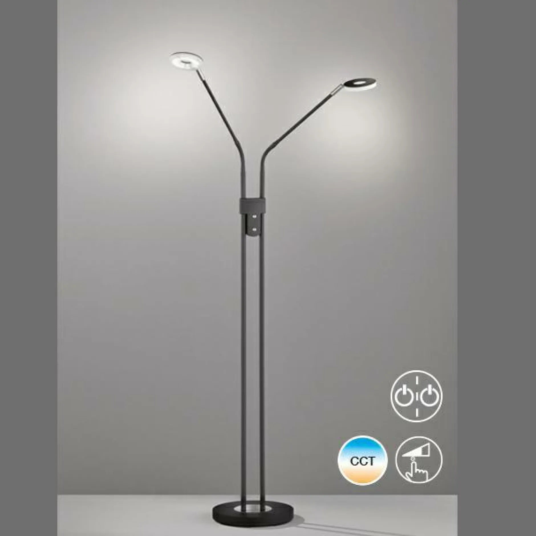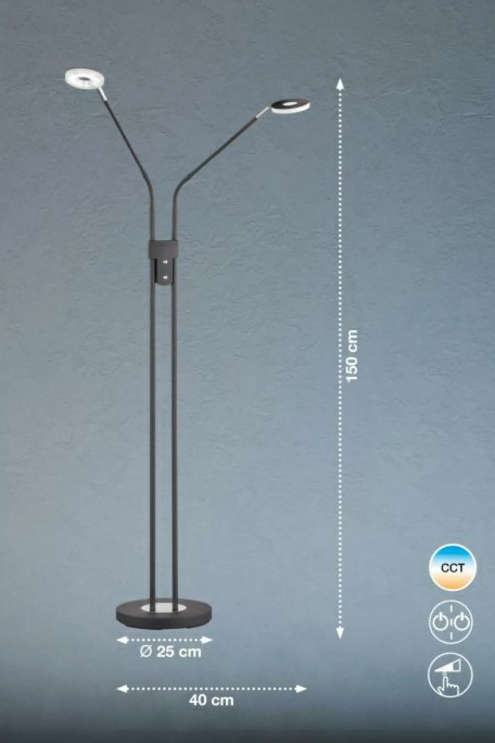 Ihre Innenausstattung vervollständigt diese Stehleuchte auf stilvolle Art und Weise. Durch das hübsche Aussehen harmoniert die Stehlampe mit nahezu jeder Einrichtung und ist eine Bereicherung für Ihren Wohnraum. Eine Option zum Dimmen sorgt für flexible Lichtverhältnisse und eine behagliche Wohlfühlstimmung. Sämtliche Qualitäten und Besonderheiten der Marke FISCHER & HONSEL sind in dieser Lampe kombiniert. Die Leuchte kann mit Leuchtmitteln mit FEST-Sockel bestückt werden. Sie besitzt eine Gesamthöhe von 150 Zentimetern, überzeugt mit der Qualität des verwendeten Metalls und vervollständigt Ihr persönliches Einrichtungskonzept dank ihres modernen Designs. Egal, in welcher Umgebung sie integriert wird, wird die Stehleuchte jedem Wohnraum eine schöne Note verleihen. Das hübsche Design der Lampe schenkt jedem Raum ein wohliges Flair, das praktisch zu jeder Ihrer bestehenden dekorativen Elemente passen kann. Sorgen Sie mit dieser Stehlampe für die perfekten Lichtverhältnisse in Ihrem Zuhause.
