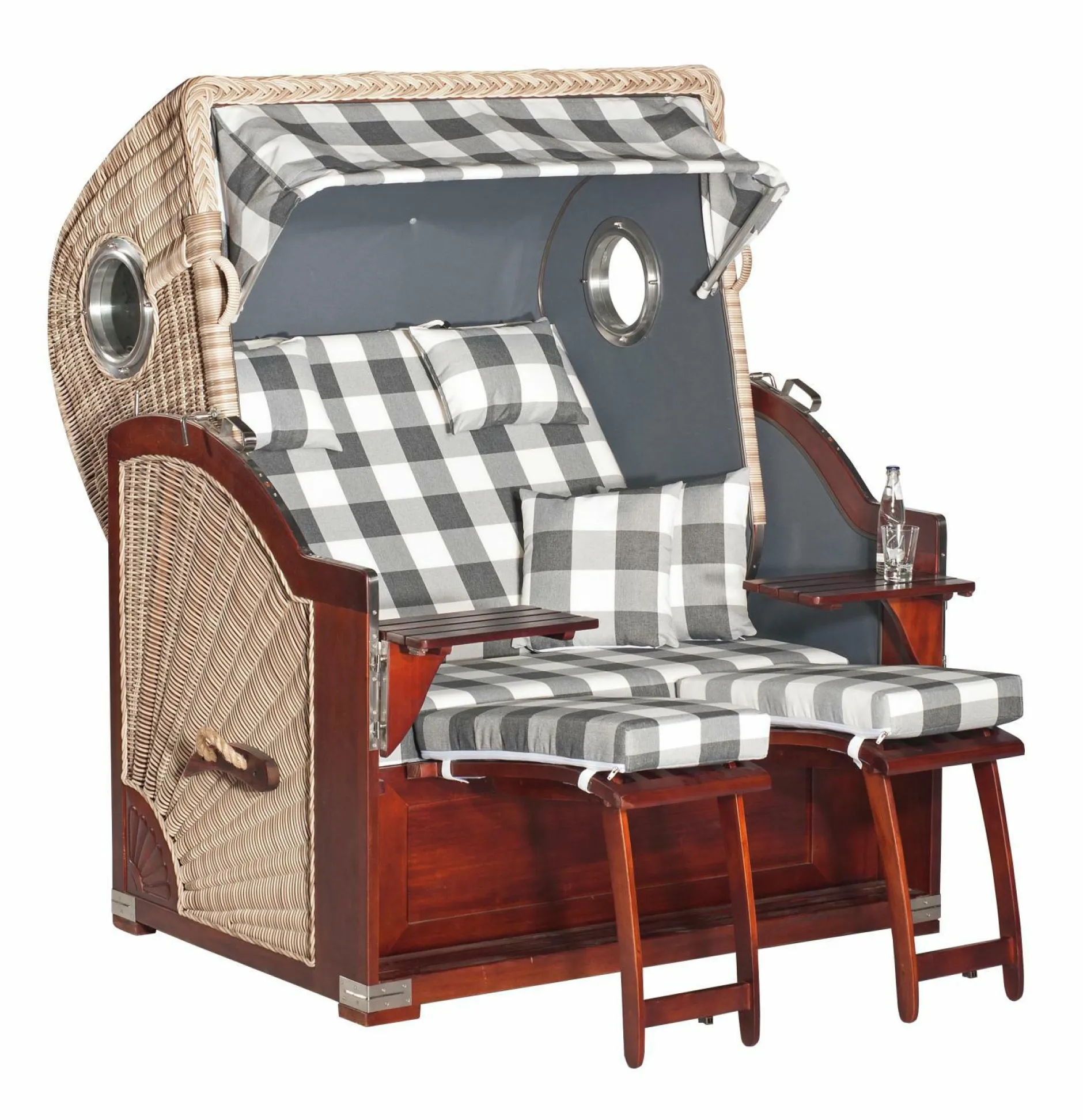 · inkl. 2 Kuschelkissen, 2 höhenverstellbaren Nackenkissen, 2 Fußkissen, Staufach und 2 Schwenktischen
