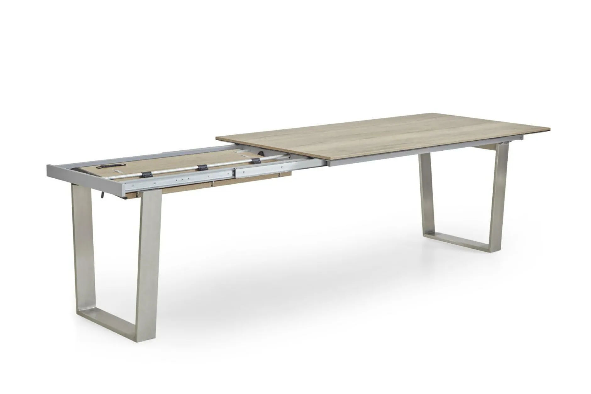 · mit Front-Slide mit einer Falteinlage um ca. 100 cm verlängerbar Gestell: Trapezkufe Edelstahl gebürstet