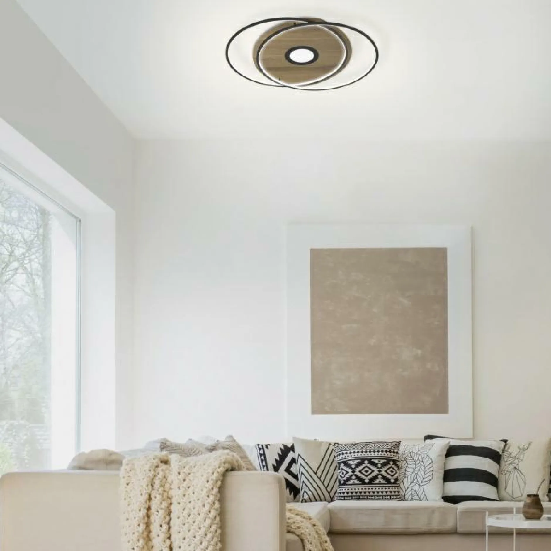 Funktionale Beleuchtung vereint diese Deckenlampe mit ansprechendem Design. Die Deckenlampe zeigt sich in einem schönen Stil und integriert sich auf tolle Weise in jedes Zimmer. In dieser Deckenleuchte kommen alle Qualitäten und Besonderheiten, die die Marke Paul Neuhaus ausmachen, zusammen. Die Leuchte hat ein Längenmaß von 75,3 Zentimetern, verfügt über ein Breitenmaß von insgesamt 62 Zentimetern und misst in der Höhe 7 Zentimeter. Die Deckenlampe im modernen Design ist für die Aufnahme von Leuchtmitteln mit einem LEDF-Sockel geeignet. Die Lampe aus Metall sorgt für eine tolle Optik und verleiht jedem Bereich außerdem mehr Ambiente. Sie fügt sich perfekt in Ihren bestehenden Wohnstil ein und kann nicht nur Beleuchtung, sondern auch ein herrliches dekoratives Element sein. Die Deckenlampe ist großartig dazu geeignet, jedes Zuhause aufzuwerten.