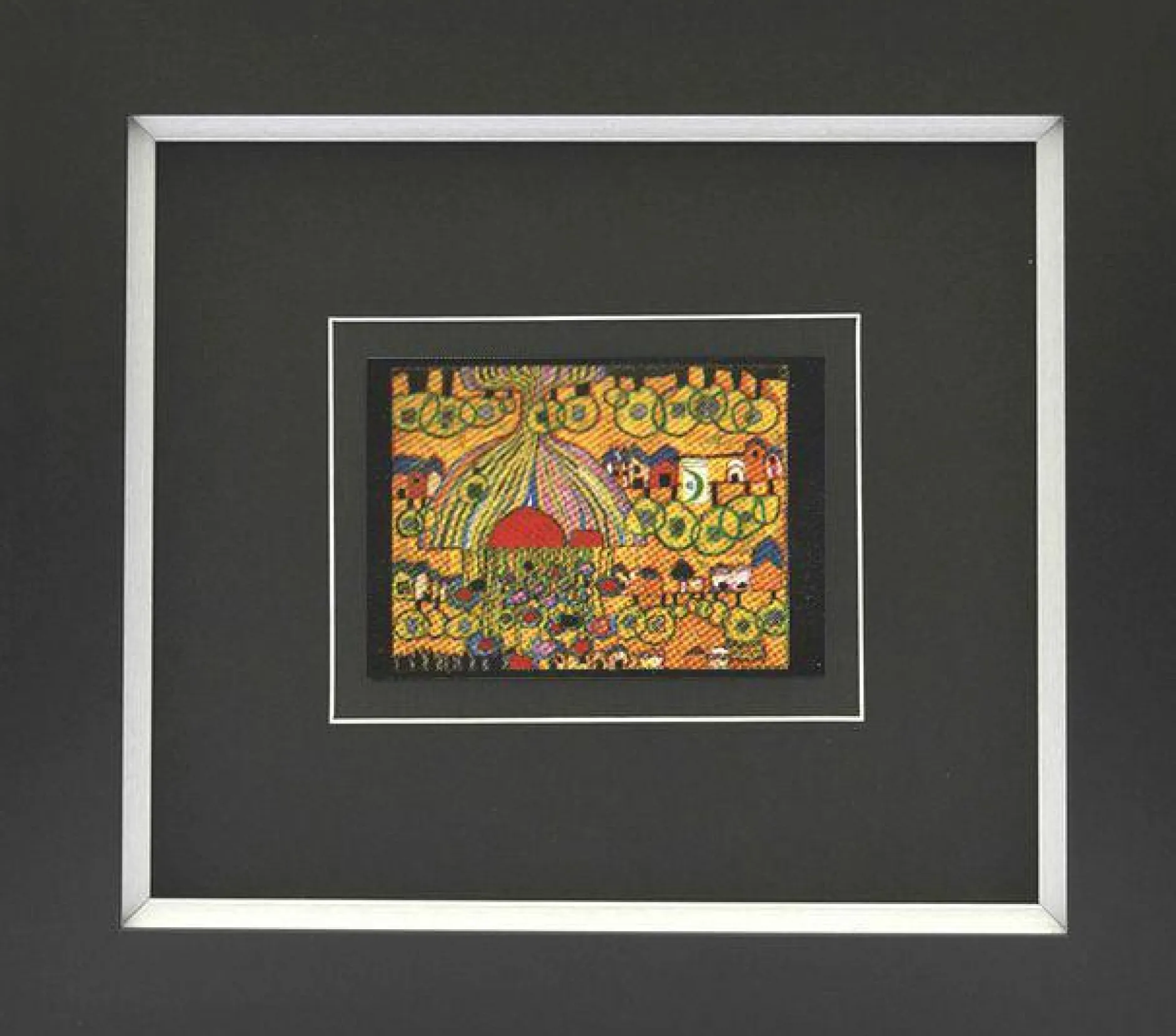 Das Bild von dem Künstler Hundertwasser besitzt einen ganz besonderen Charme. Aus Glas gefertigt, ist auf dem dunkelgrauen Untergrund ein buntes, künstlerisches Bild im typischen Hundertwasser-Stil platziert. Durch diesen Farbkontrast wird das Bild zum stilvollen Highlight an Ihrer Wand. Setzen Sie mit diesem außergewöhnlichen Bild einen großartigen Akzent im Raum.