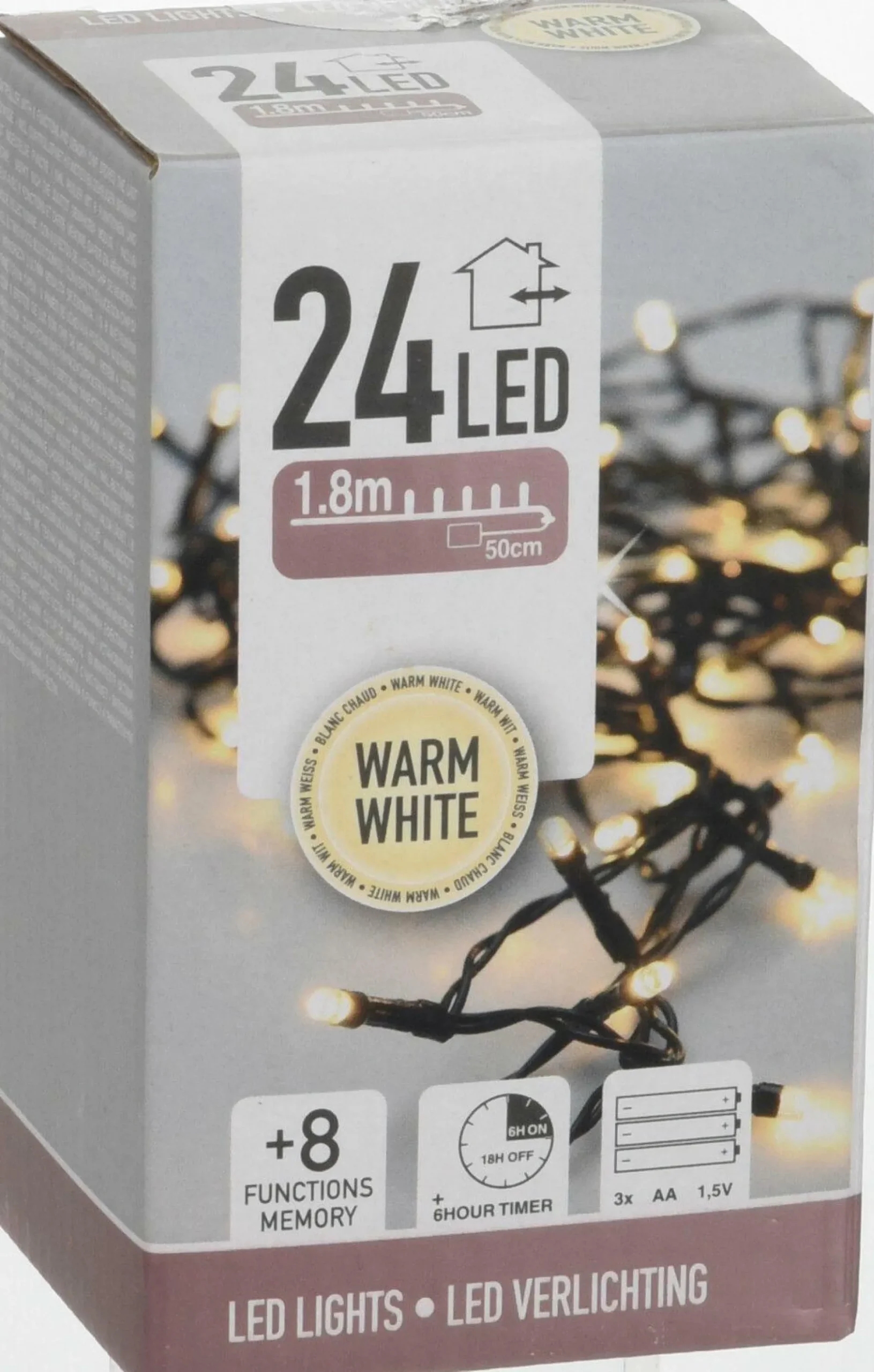 Mit der Lichterkette LED OUTDOOR tauchen Sie Ihre Umgebung in ein angenehmes Licht. Die Lichterkette ist mit 24 Lichtern ausgestattet und für den Außenbereich geeignet. Vor allem um das Geländer von Balkon oder Terrasse gewickelt, setzt sich die Lichterkette hervorragend in Szene. Das Zuleitungskabel hat eine Länge von 50 cm. Dank eines Timers lässt sich die Lichterkette automatisch ein- und ausschalten. Für diese Lichterkette werden 3 x AA Batterien benötigt, welche nicht im Lieferumfang enthalten sind. Über acht Funktionsregler können Sie die Lichterkette nach Ihren individuellen Wünschen einstellen.