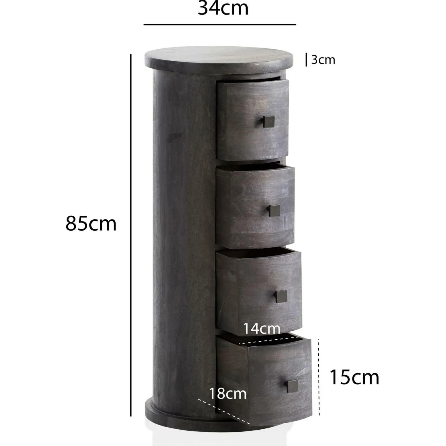 · Abmessungen – Innenmaße je Schublade (BxHxT): 14 x 15 x 18 cm, Holzstärke Ablage: ca. 3 cm.