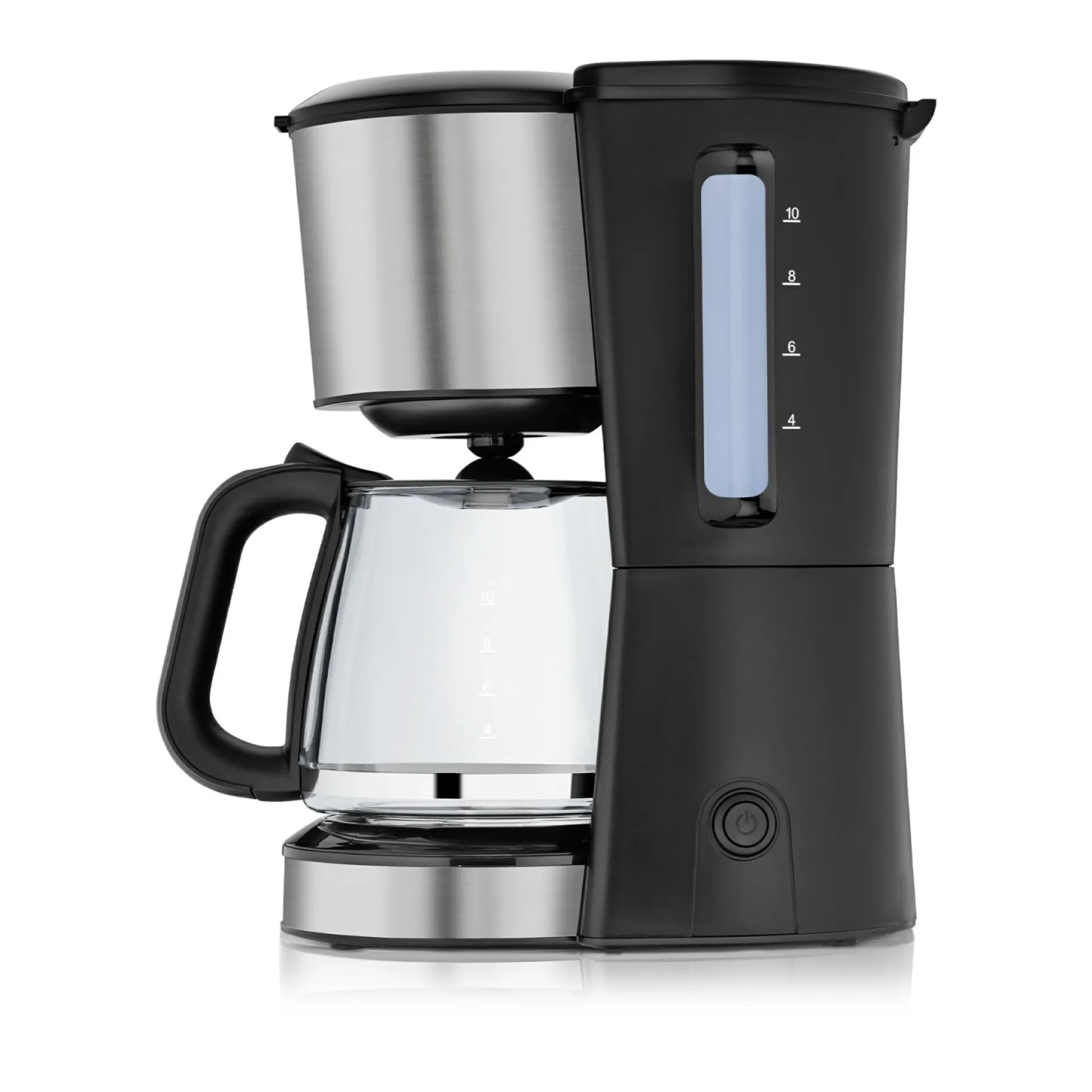 · WMF Bueno Aroma Kaffeemaschine mit intelligenten Funktionen Mit ihrem schlicht-eleganten Design und dem hochwertigen mattierten Cromargan® Gehäuse fügt sich die WMF Bueno Aroma Kaffeemaschine nahtlos in jedes Küchenambiente ein. Clevere Funktionen sorgen für eine komfortable und einfache Bedienung. Die externe Wasserstandsanzeige und der herausnehmbare Filtereinsatz ermöglichen eine mühelose Kaffeezubereitung. Die hochwertige Glaskanne fasst bis zu zehn Tassen Kaffee und bewahrt den vollen Geschmack für ein unvergleichliches Kaffeeerlebnis. Einfach die Ein-/Ausschalttaste mit Kontrollleuchte drücken und jedes Mal frisch gebrühten Kaffee genießen. Bei der WMF Bueno Aroma Kaffeemaschine Glas verbindet sich elegantes Design mit außergewöhnlicher Langlebigkeit: Das robuste Cromargan® Gehäuse mit mattem Oberflächenfinish beeindruckt immer wieder aufs Neue durch seine edle Ästhetik. Die WMF Bueno Serie bietet mit einer Kaffeemühle, einem Wasserkocher und Toaster sowie einem passenden Mixer, Eierkocher und einer Zitronenpresse jeden Tag das perfekte Frühstückserlebnis.