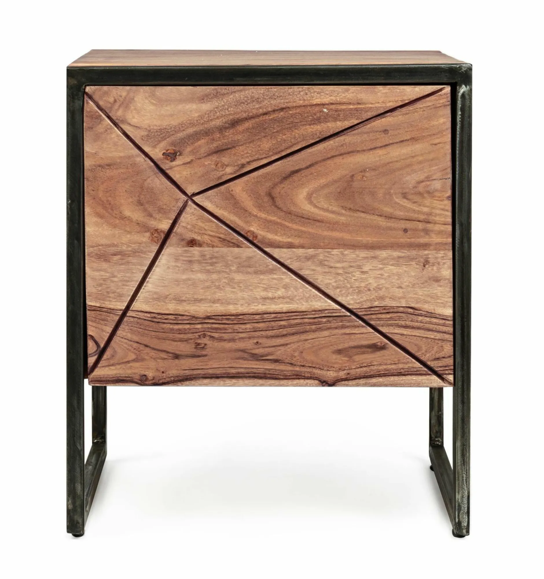 · Nachttisch aus Akazienholz mit Gestell aus pulverlackiertem Stahl und Oberflächenschutz Acryl. Rücken aus Sperrholz.