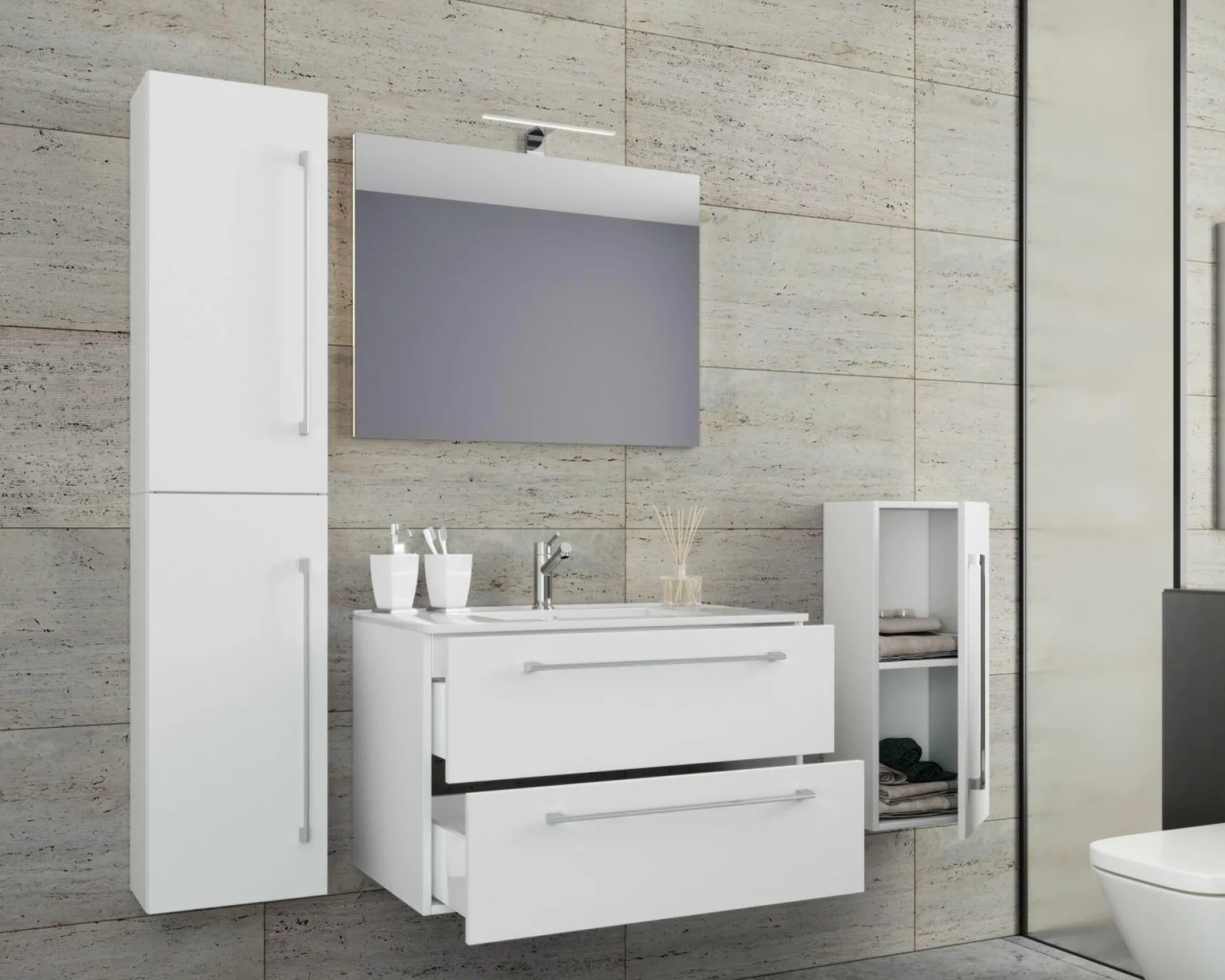 · Das Badmöbel-Set besteht aus einem Unterschrank mit zwei Schubladen.