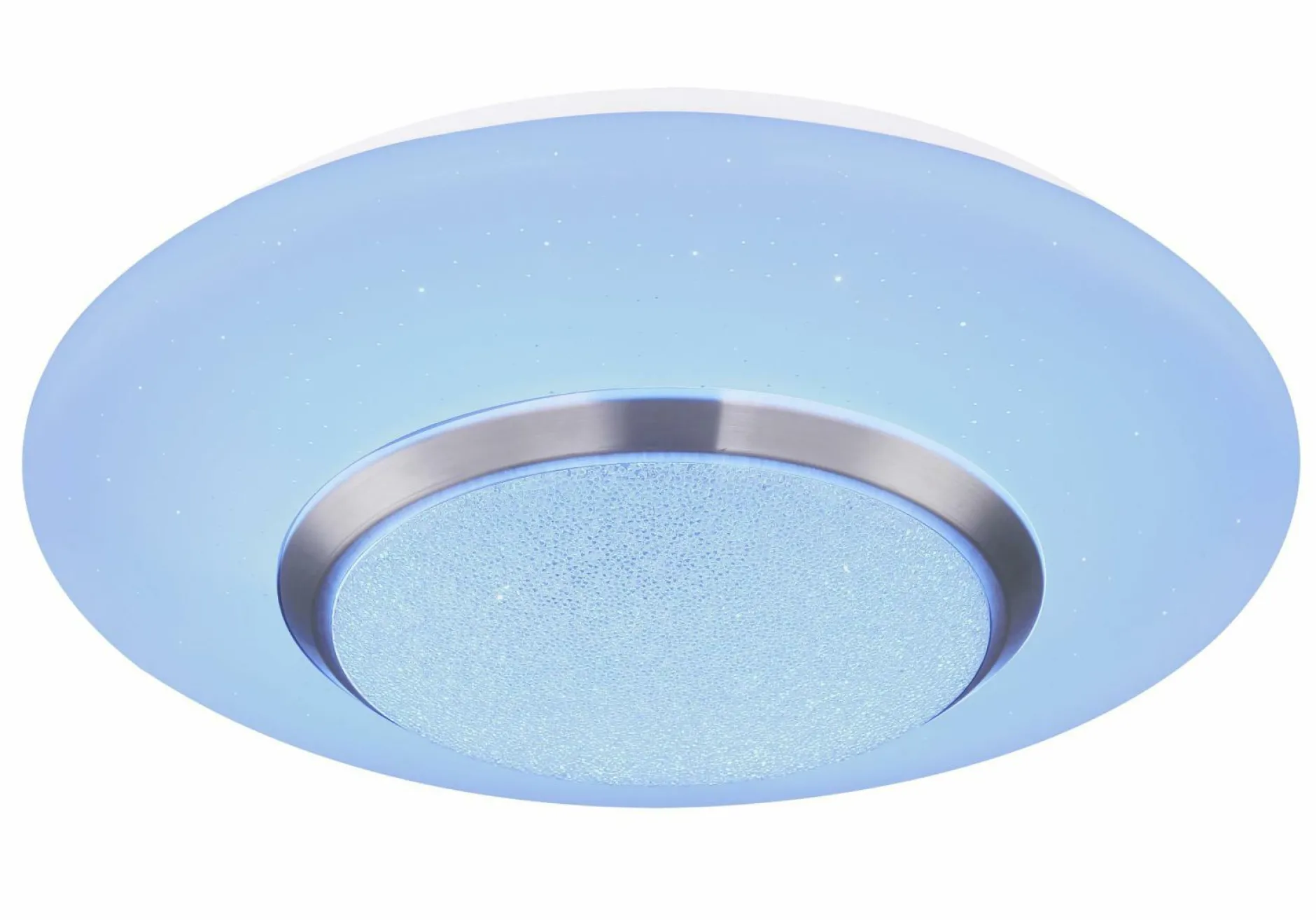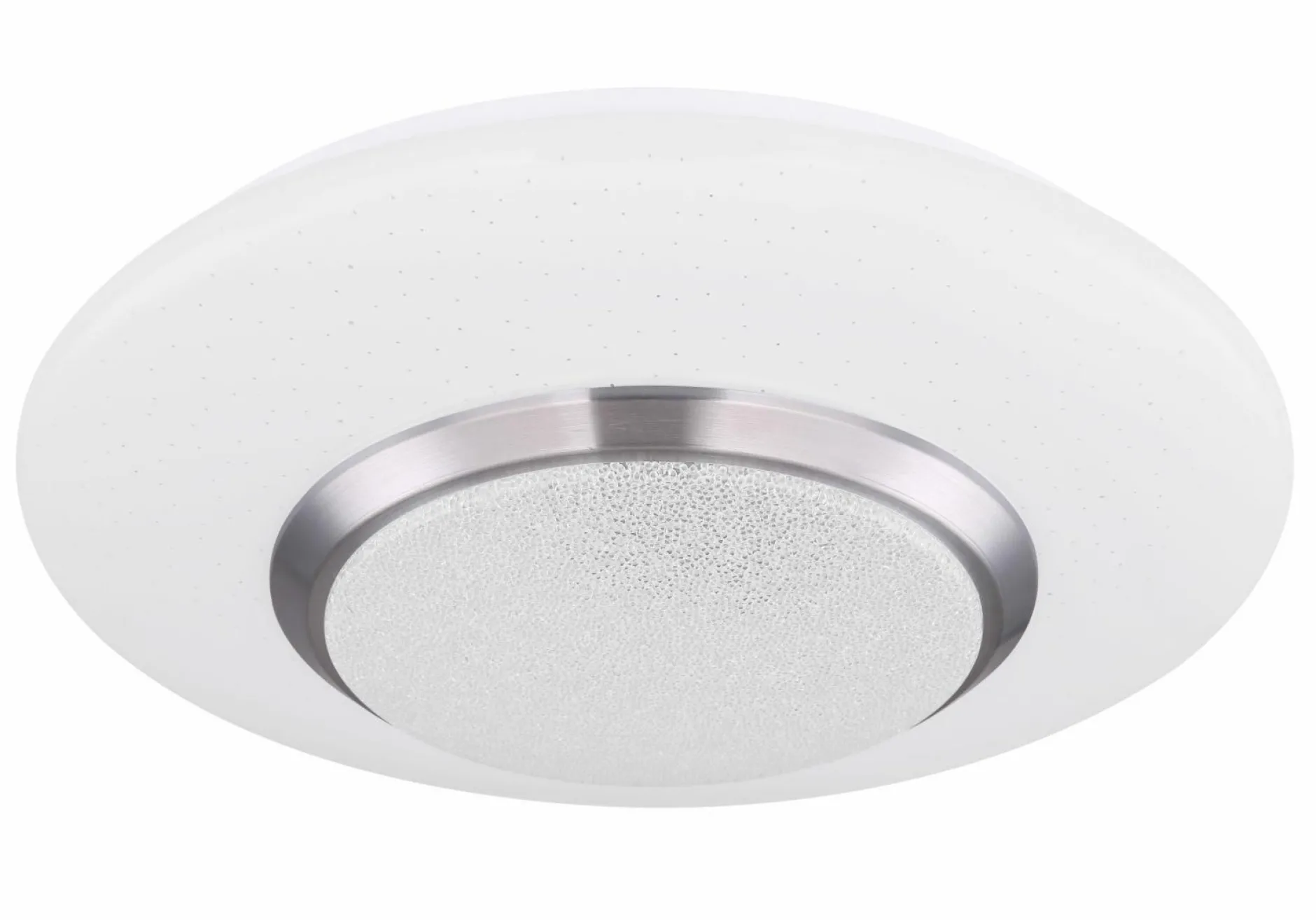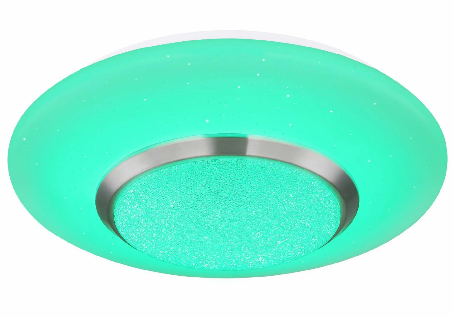 Für eine universelle Raumbeleuchtung in Flur, Wohnraum oder Schlafzimmer eignet sich die Deckenleuchte CANDIDA des Herstellers Globo Handels. Die Deckenleuchte in Weiß besteht aus edlem Metall sowie Kunststoff und lässt sich aufgrund ihres schlichten Designs problemlos in jeden Einrichtungsstil integrieren. Besonders stark zur Geltung kommt sie jedoch durch die verschiedenen Farben, welche sich dank eines Farbwechslers individuell einstellen lassen. Zudem lässt sich die Helligkeit dimmen und auch ein Sternenhimmel-Effekt kann mit einer Fernbedienung erzeugt werden. Diese Leuchte besitzt ein festverbautes Leuchtmittel (18 Watt), welches Ihre Räume bis zu 20000 Stunden beleuchtet.