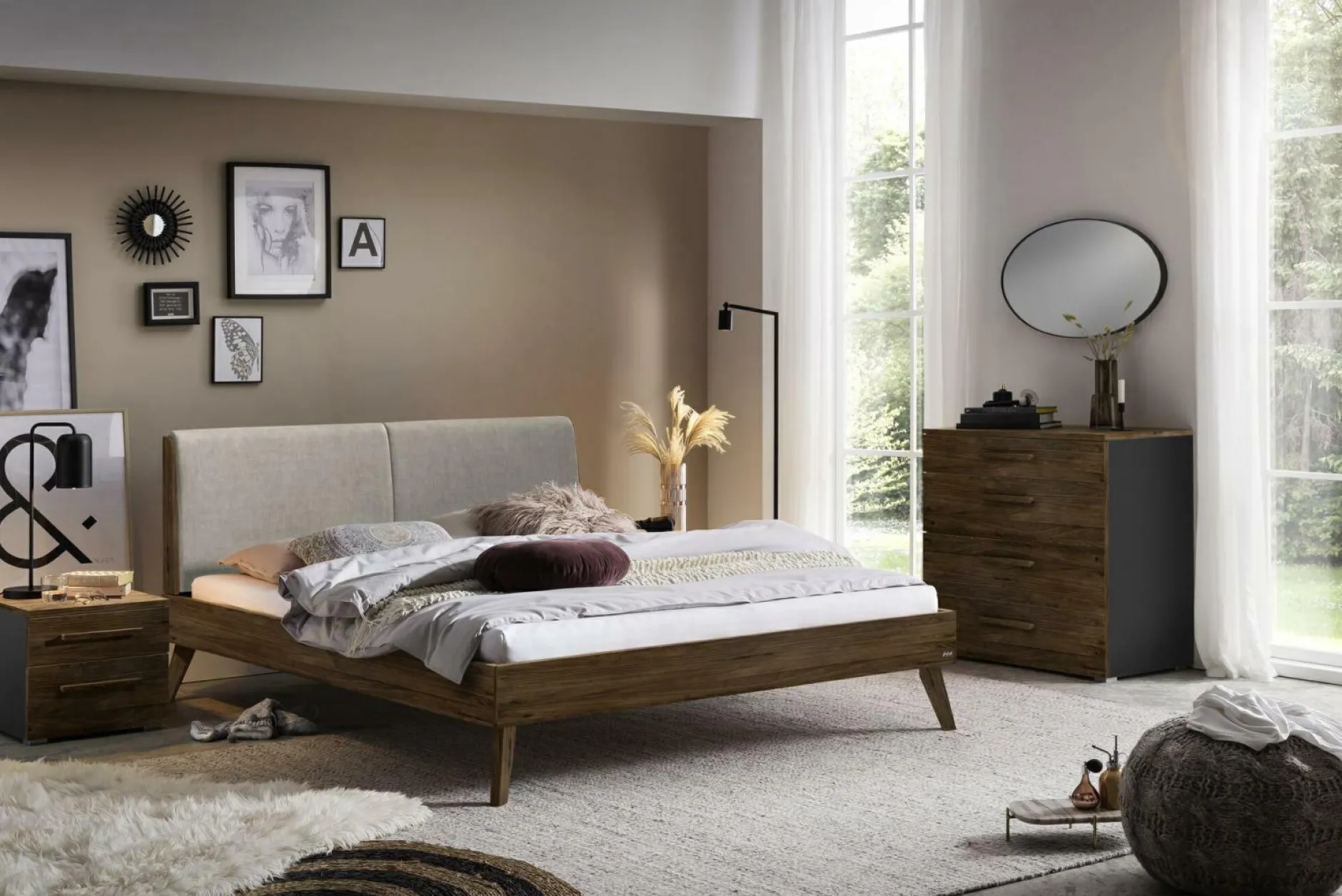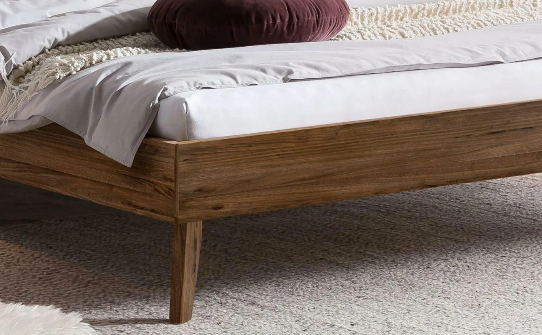 · Simone besticht durch die Harmonie zwischen Massivholz und Polster. Die Holzblenden am Kopfteil nehmen die natürliche Eleganz der Bettfüsse auf. Bei diesem mit Handwerk gefertigten Bett sind es auch die Details, die den Unterschied ausmachen. Der einfache Aufbau des Bettgestells lässt sich unzählige Male wiederholen, Kraft und Stabilität bleiben erhalten.