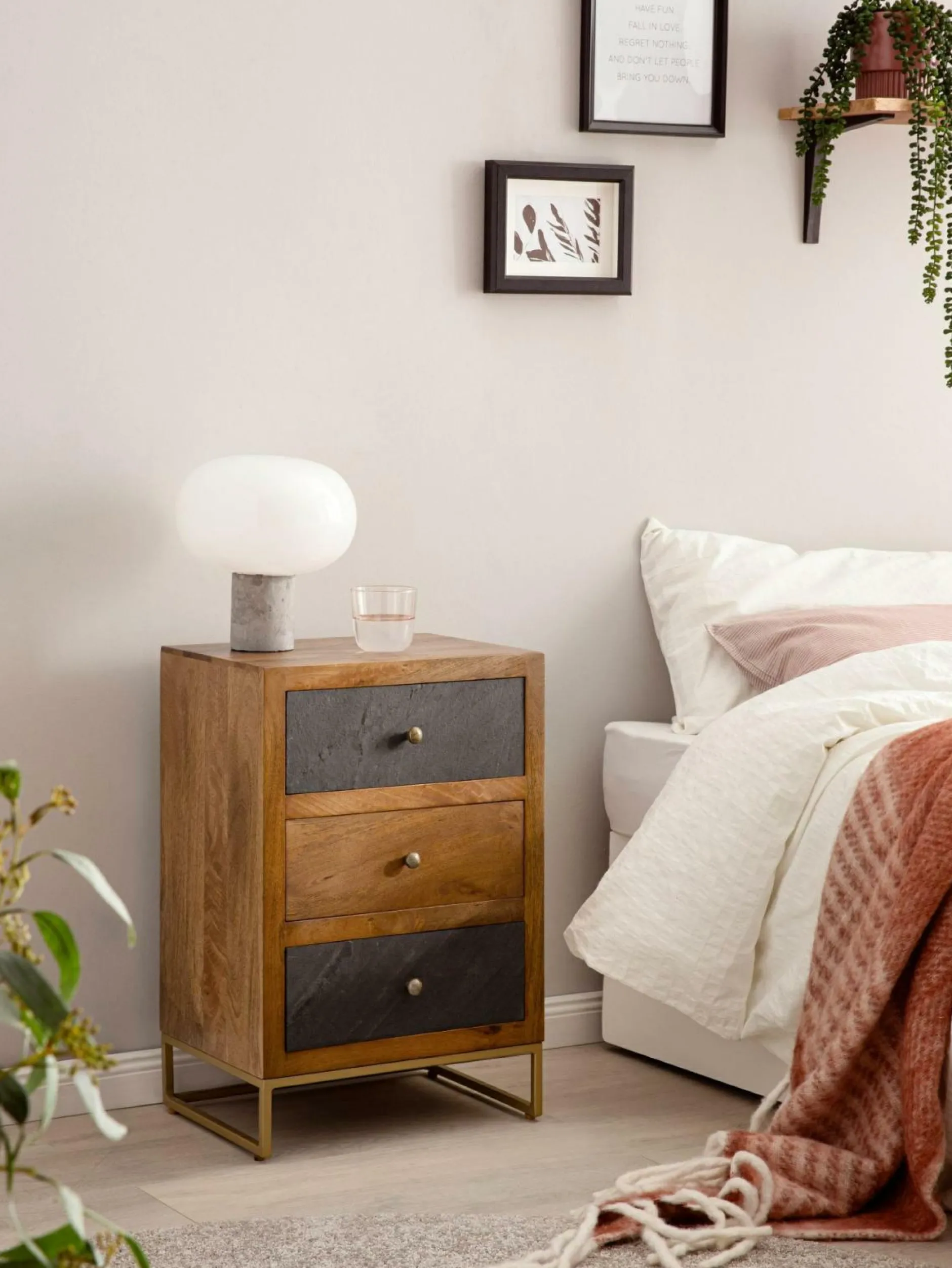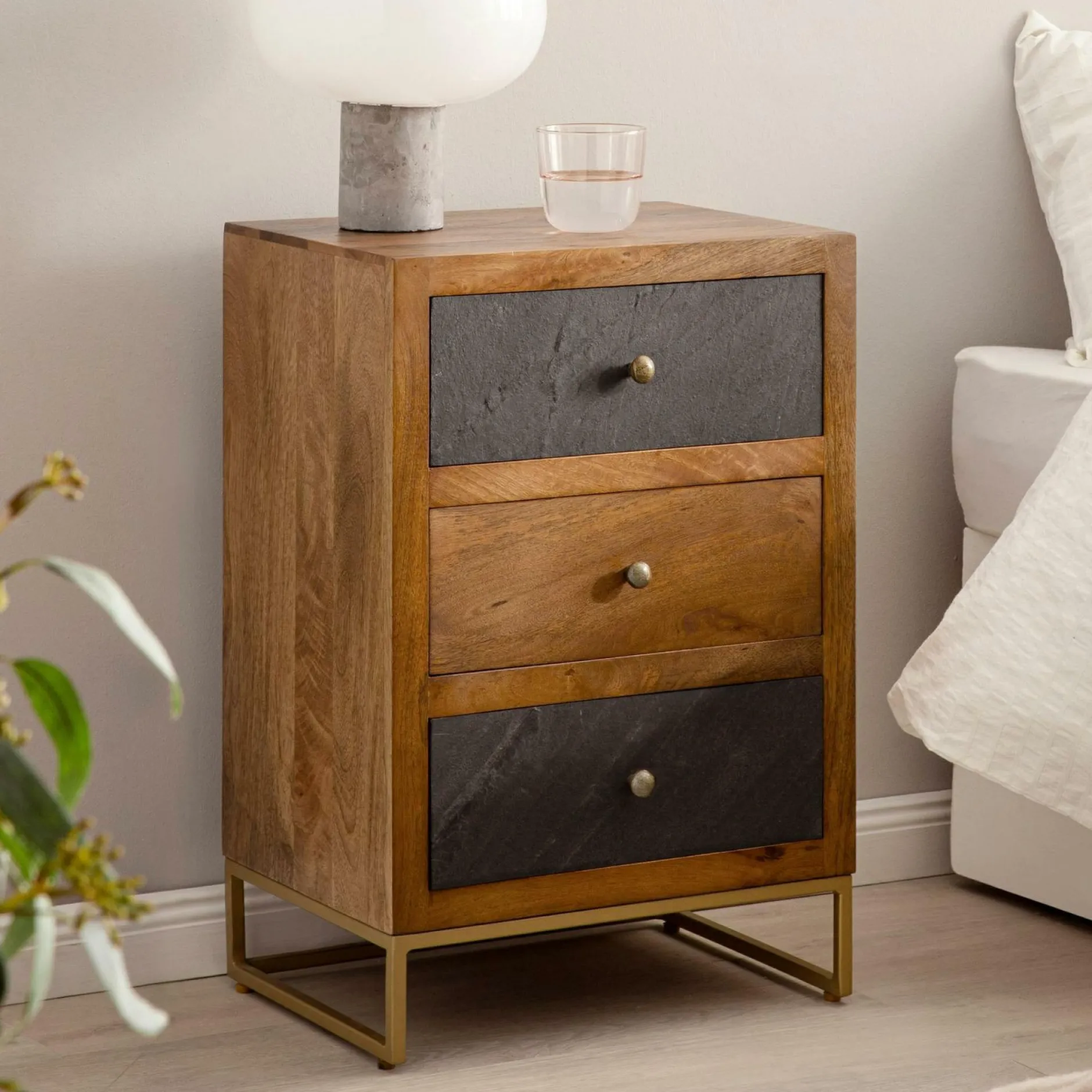 · Moderner Stil – Natürliche, warme Holzmaserung trifft auf kühle Steinoptik: Diese harmonische Nachttisch zu Dir nach Hause.