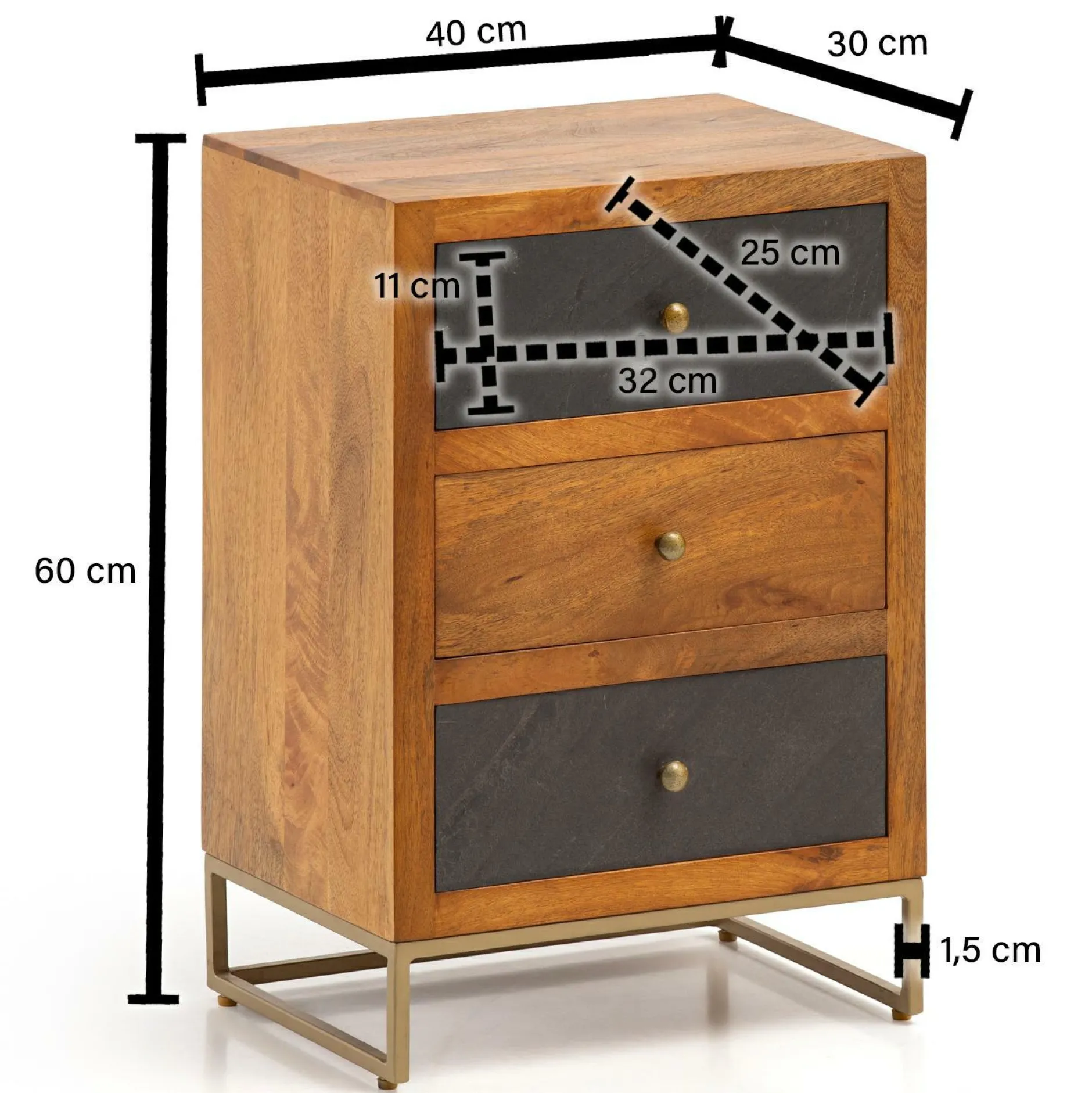 · Abmessungen – Innenabmessungen je Schublade (BxHxT): 32 x 11 x 25 cm, Tischplattenstärke: ca. 1 cm.