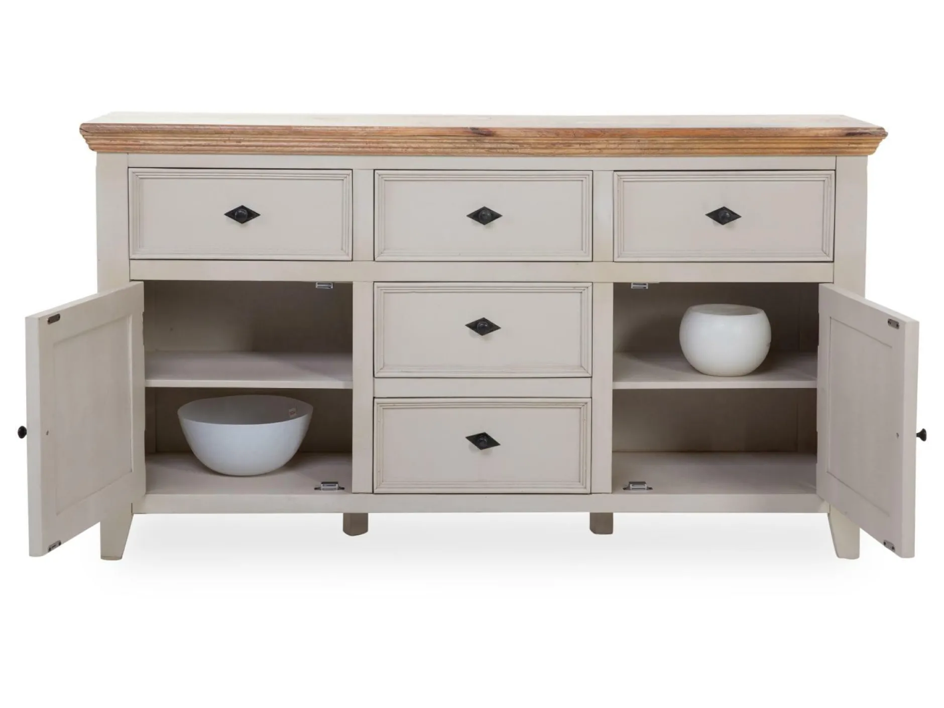 · mit 2 Holztüren und 3 Schubladen