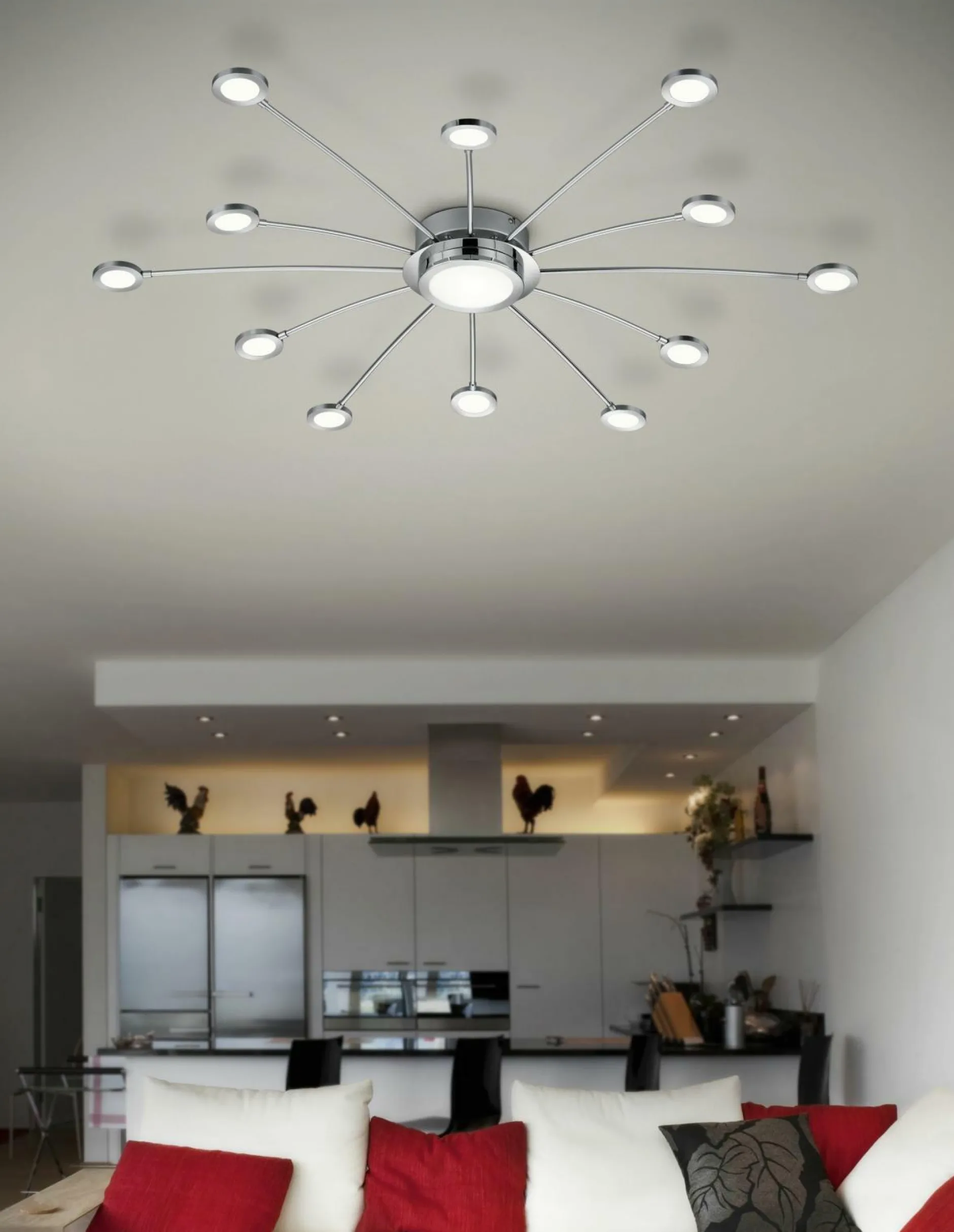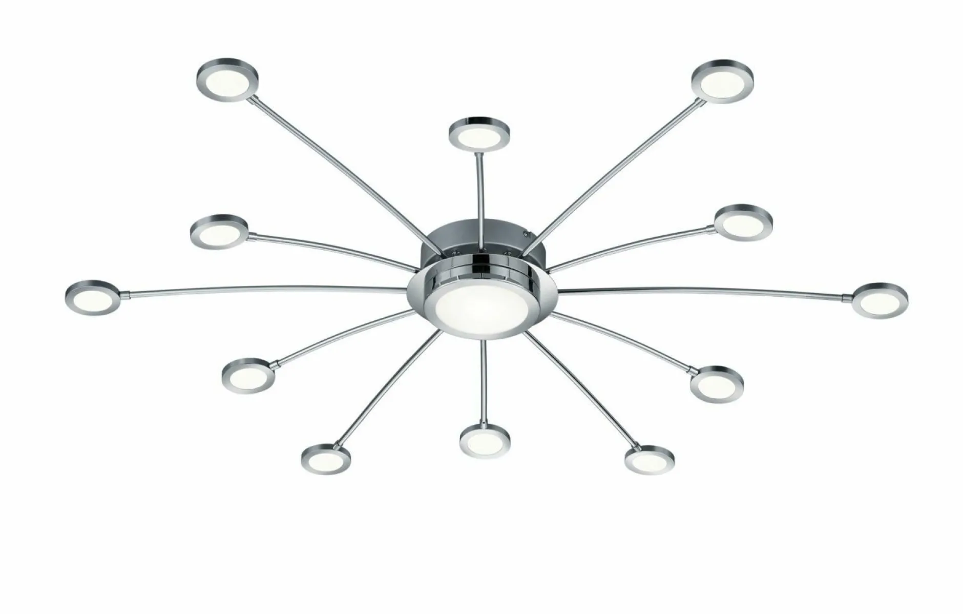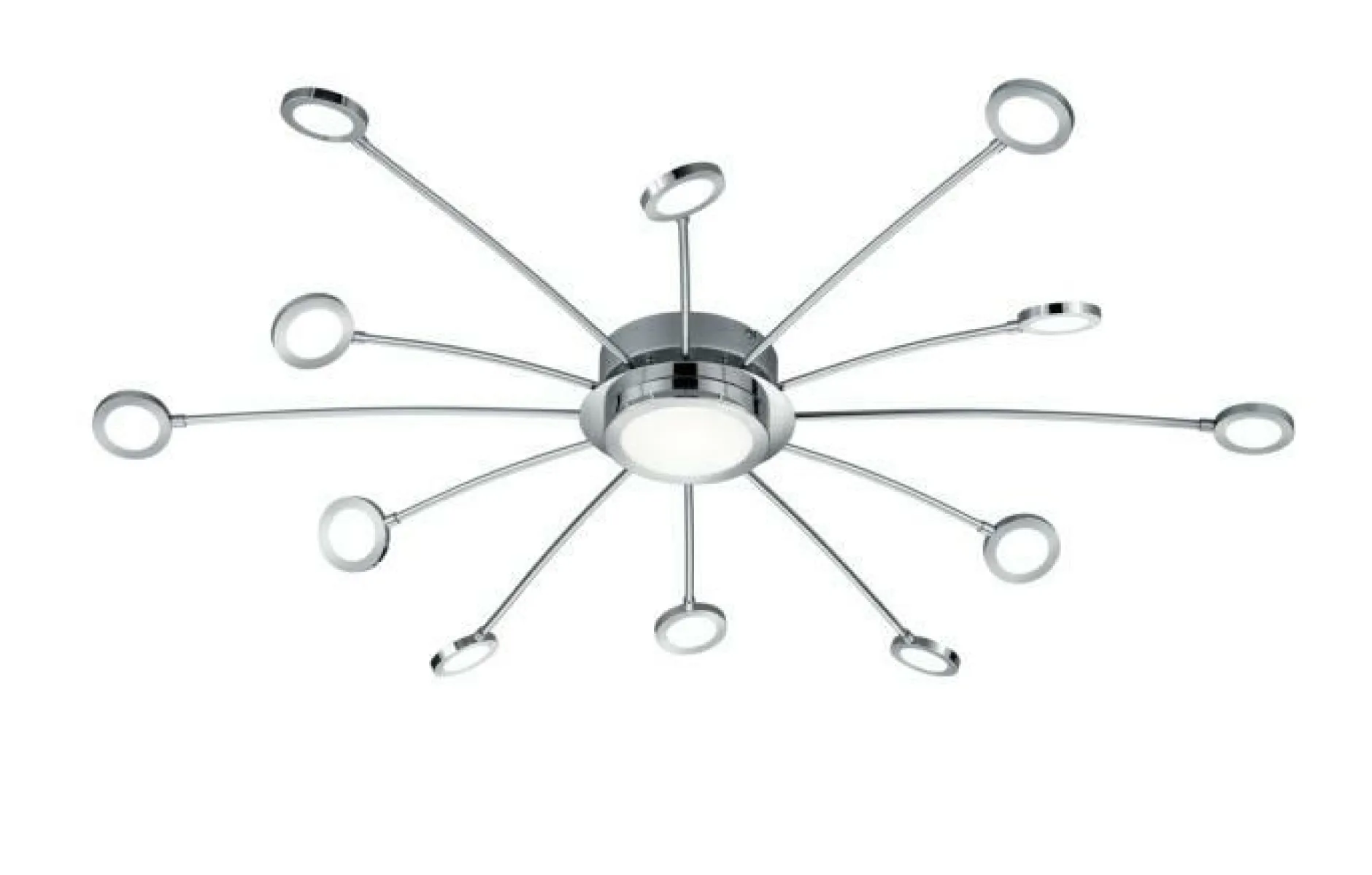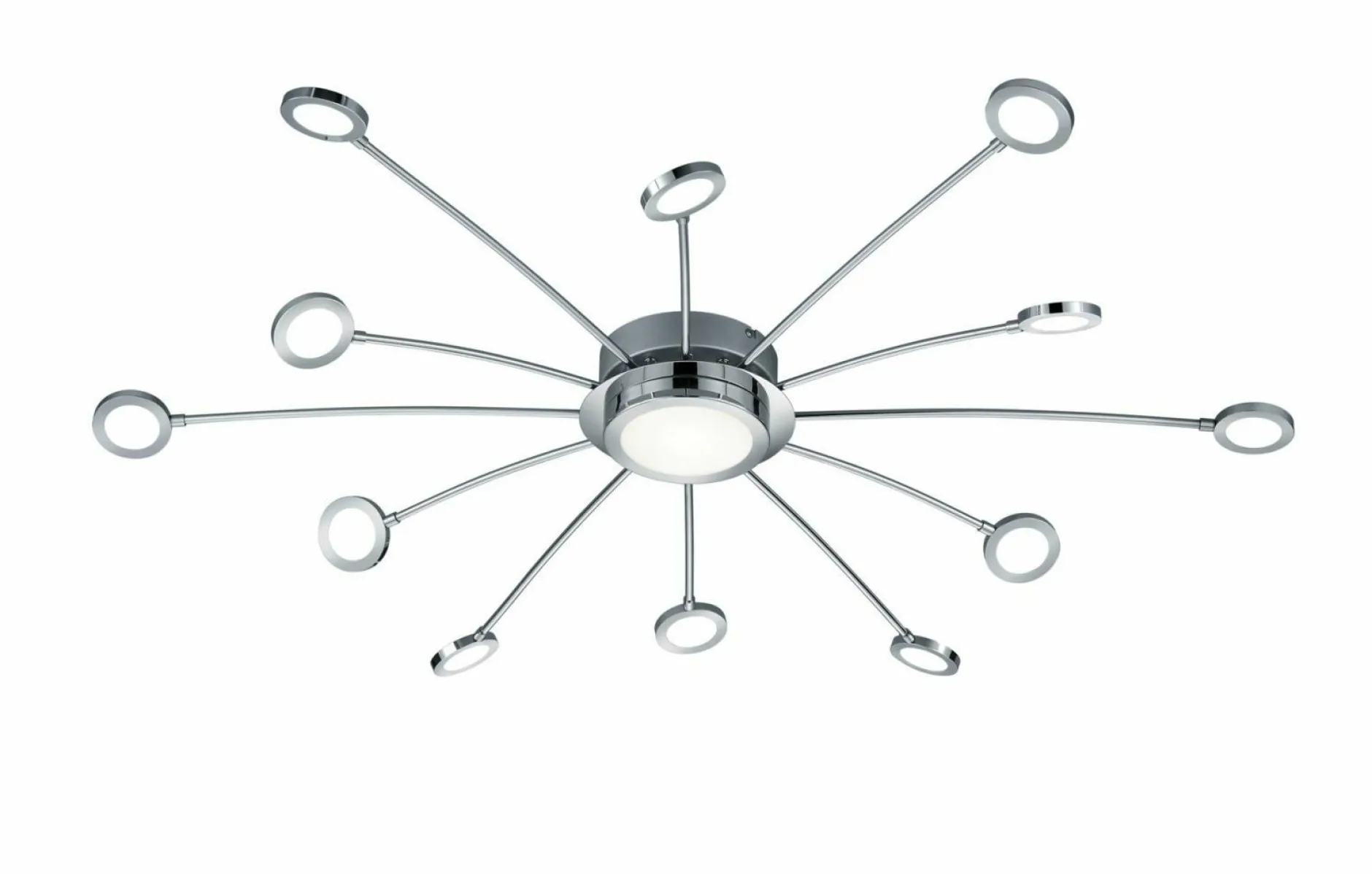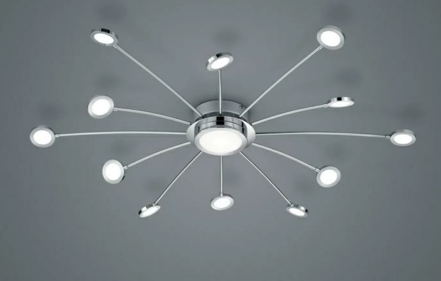 Durch den großzügigen Durchmesser von 100 cm und die vielen kleinen und großen Leuchtelemente, schafft die Deckenleuchte Bodrum sehr viel Licht in Ihrem Wohnraum. Aus Chrom gefertigt, wirkt die Lampe vor allem durch ihre spezielle Form sehr schick und modern. Durch die Fernbedienung ist die Deckenleuchte dimmbar und dazu können Sie auch noch die Lichtfarbe einstellen – zwei tolle Vorteile, die Ihnen viel Spaß bereiten werden und die Sie im Alltag enorm unterstützen werden. Ob Im Wohn-, Ess- oder Schlafzimmer – diese Deckenleuchte wird jeden Raum mit wunderschönem Licht versorgen und dazu noch ein schönes Accessoire sein.
