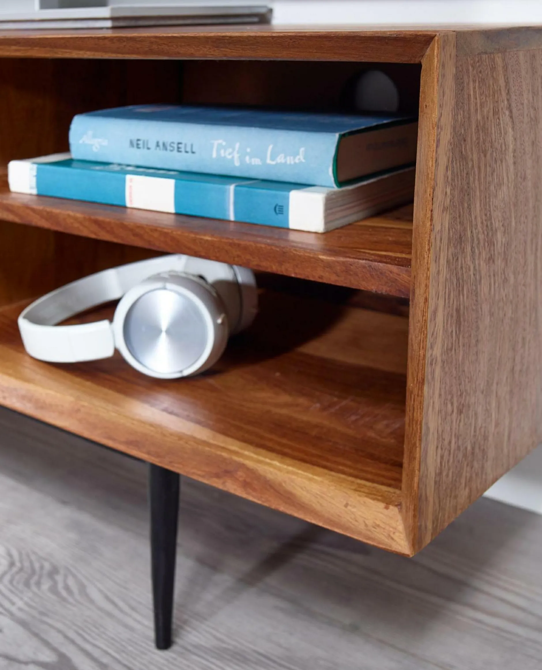· Lieferumfang – Ein Fernsehunterschrank ohne Dekoration.