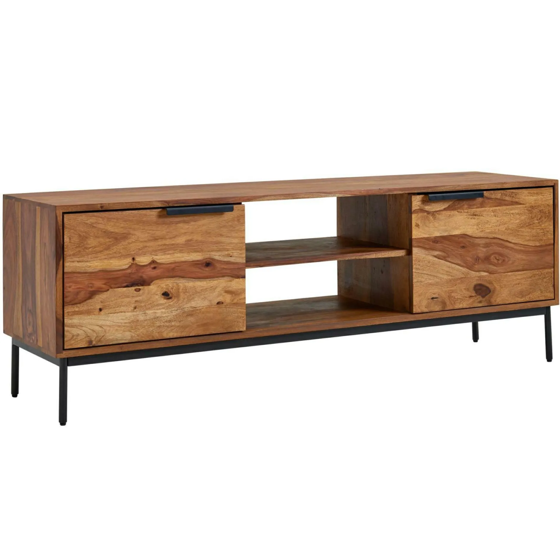 · Viel Stauraum – Zwei offene Ablagen und zwei Türfächer halten alles bereit, was zum Fernsehen Receiver, DVDs und vieles mehr.