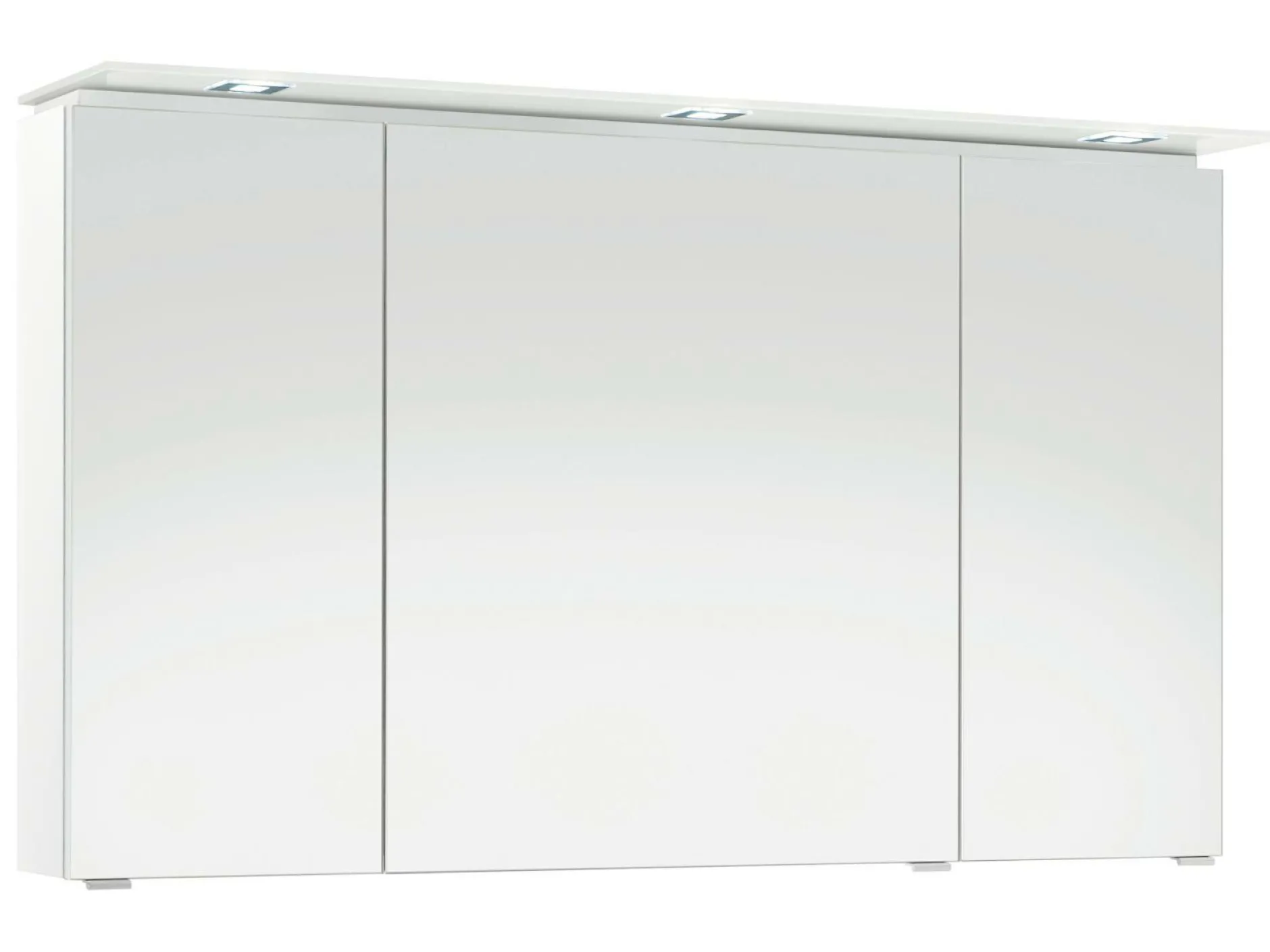 Der weiße Glanzkorpus dieses Badezimmerschrankes wird durch drei praktische Spiegeltüren in der Front ergänzt. Ein zeitloser Stil, der in unterschiedlichste Badezimmereinrichtungen integriert werden kann. Hinter diesen befindet sich praktischer Stauraum für allerhand Badutensilien.