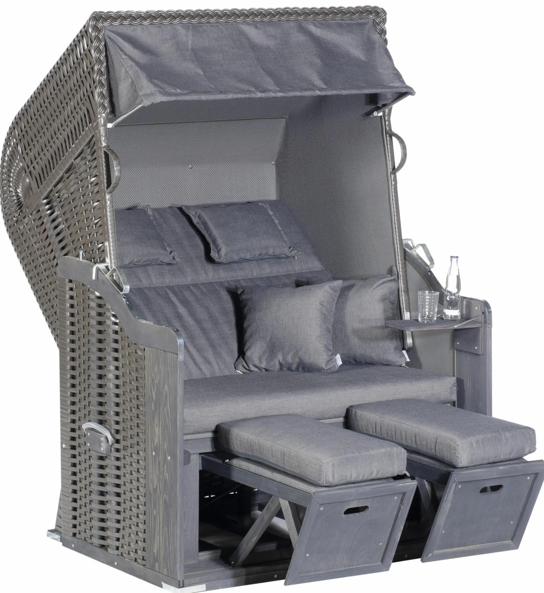 · Herausnehmbare Kissengarnitur, inkl. 2 Kuschelkissen, 2 höhenverstellbaren Nackenkissen, 2 Fußkissen und Klapptisch