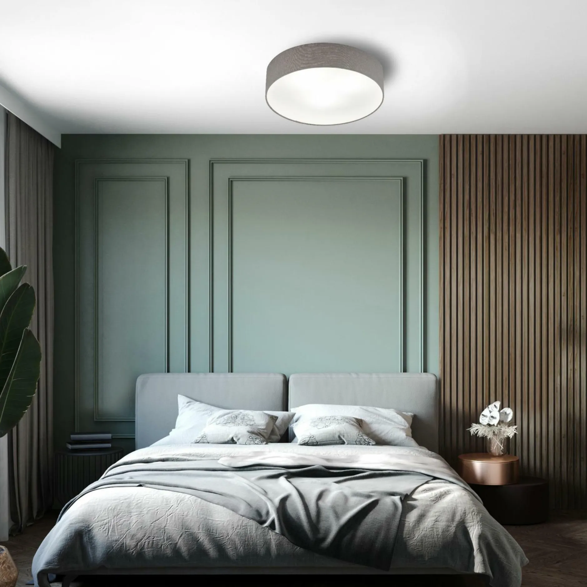 · ZEITLOSE DECKENLEUCHTE: Ein schlichtes Design, eine klassische Form und ein Lampenschirm in Grau. Mit diesen Zutaten entsteht eine moderne Deckenleuchte für Ihren Wohnraum.