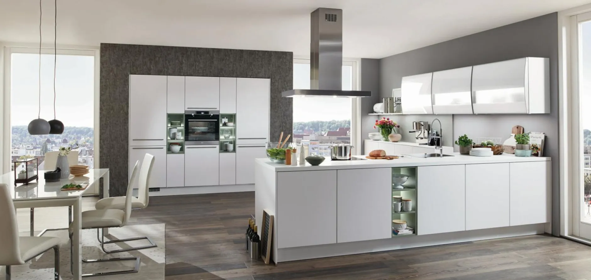 · 3 x Wandschrank mit bombierter Glasrahmenfront
