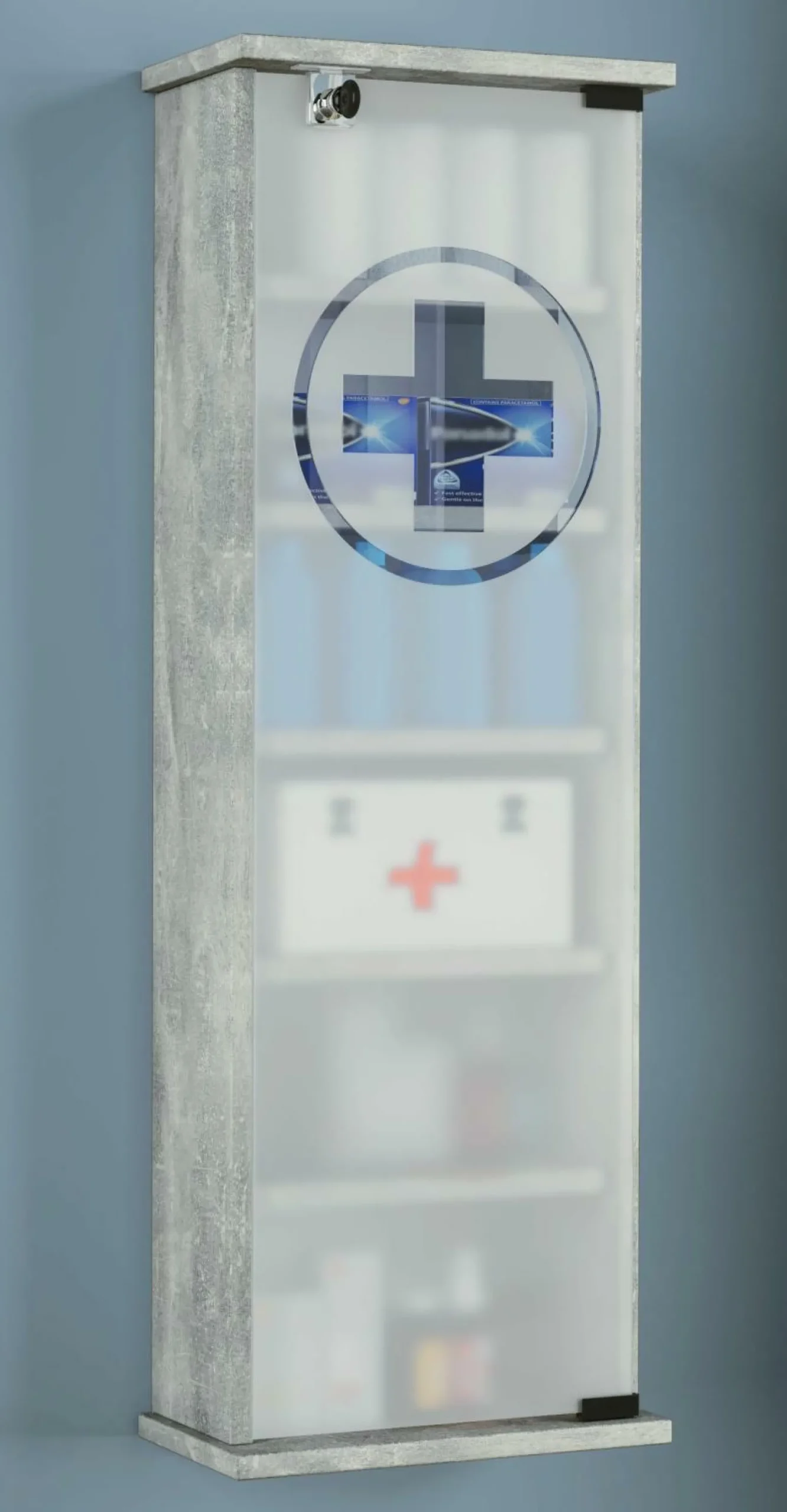 · Das Medizinschrank “Omal“ von VCM besteht aus einer Holzstruktur-Nachbildung mit einer eleganten ESG-Sicherheitsglastür, welche durch ein Türschloss auch verriegelt werden kann.