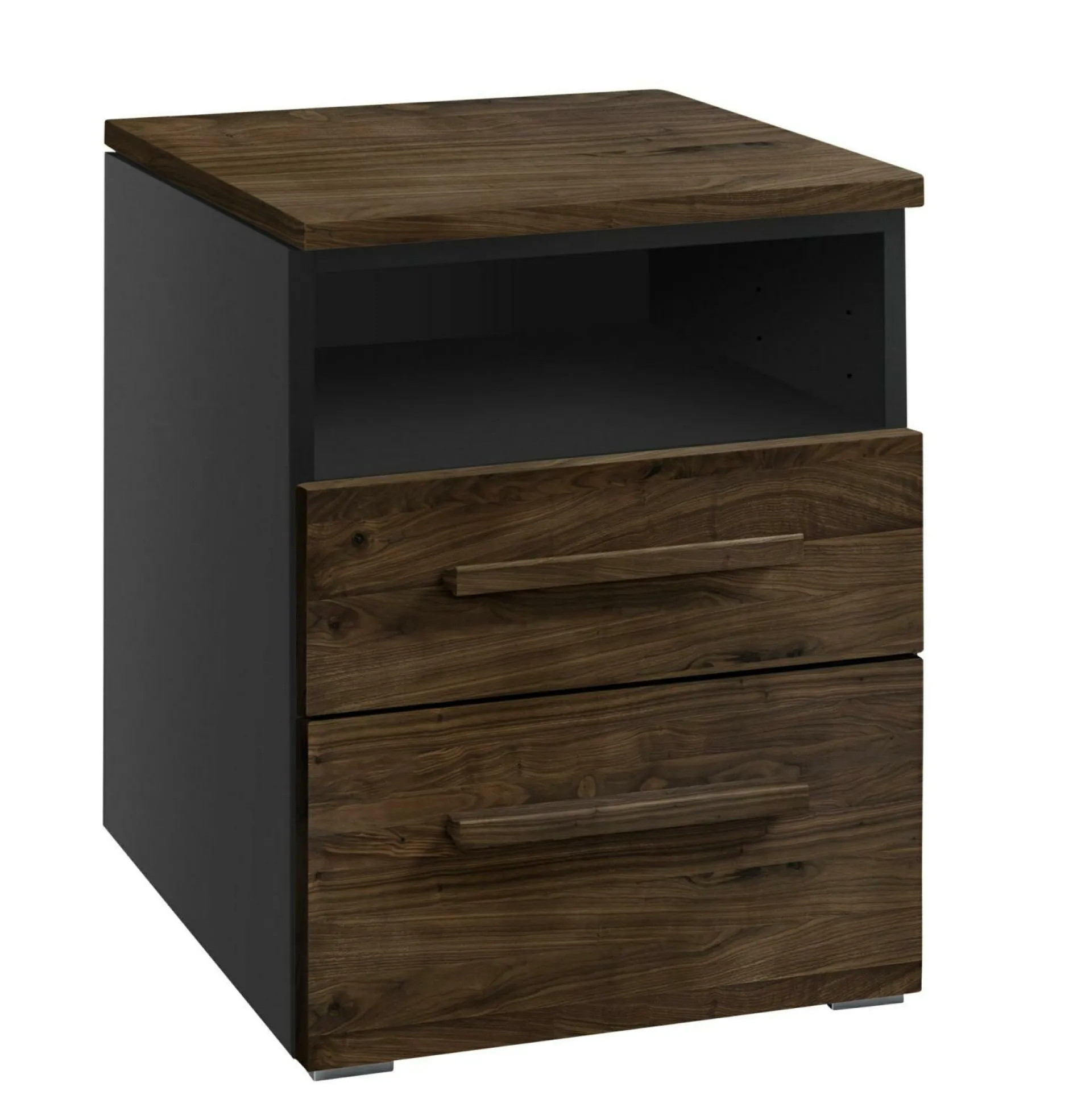 · Nachttisch mit einem Ablagefach und 2 Schubladen (gedämpfter Selbsteinzug) mit je einem Stauraum von 38x39x8 cm und 38x39x13 cm.