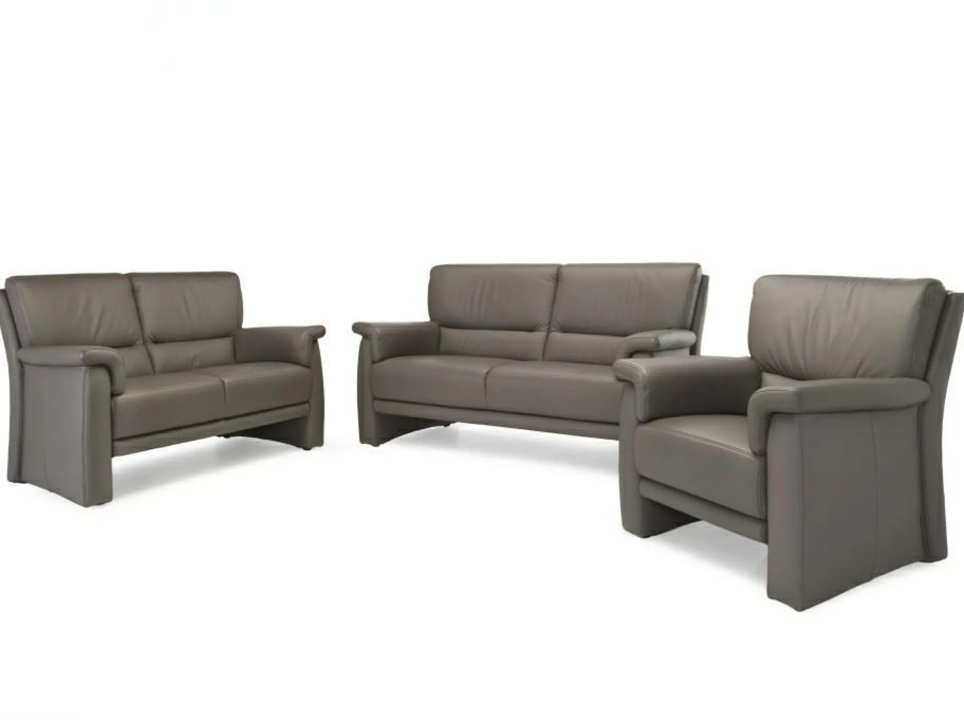 Moderne Eleganz und klare Linien zeichnen die Polstergarnitur Moritz von himolla aus. Der hochwertige Longlife Echtlederbezug in Canon ist eher unkonventionell und passt sich dennoch an unterschiedliche Einrichtungsstile an. Die Polsterkombination besteht aus einem 2,5-sitzigen Sofa mit Rücken Nessel, Breite ca. 163 cm, einem 2-sitzigen Sofa, Breite ca. 143 cm sowie einem großzügigen Sessel, Breite ca. 81 cm. Die Ausstattung der Sitze mit Superlastic med verspricht zudem ein außergewöhnliches Sitzerlebnis. Die passenden Kissen sind separat erhältlich.