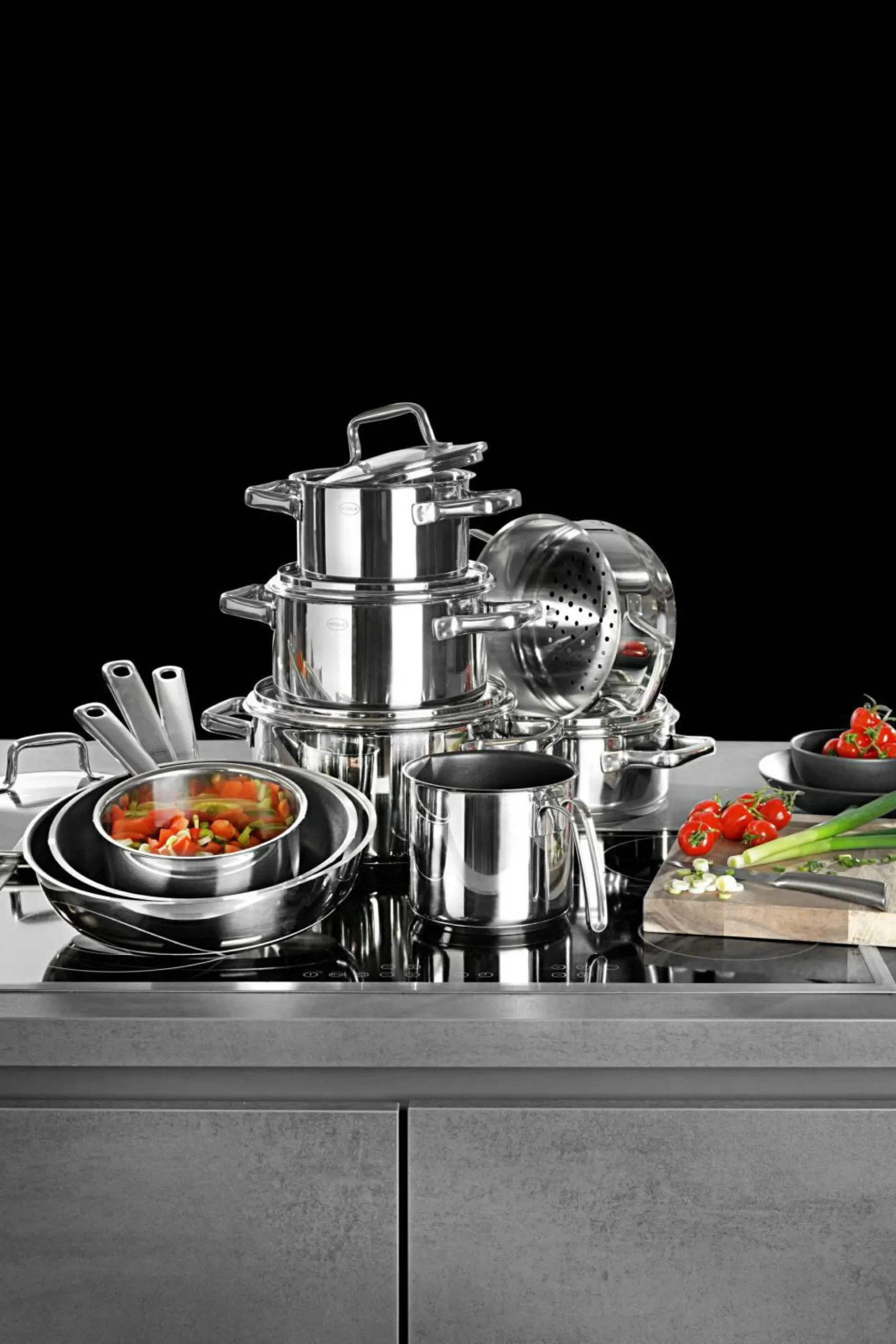 · bestehend aus: Stielkasserolle 16 cm Kochtopf 16/20/24 cm mit Deckel Bratentopf 20 cm mit Deckel Milchtopf 14 cm Dämpfeinsatz 20 cm Glasdeckel 28 cm Bratpfanne 24/28 cm