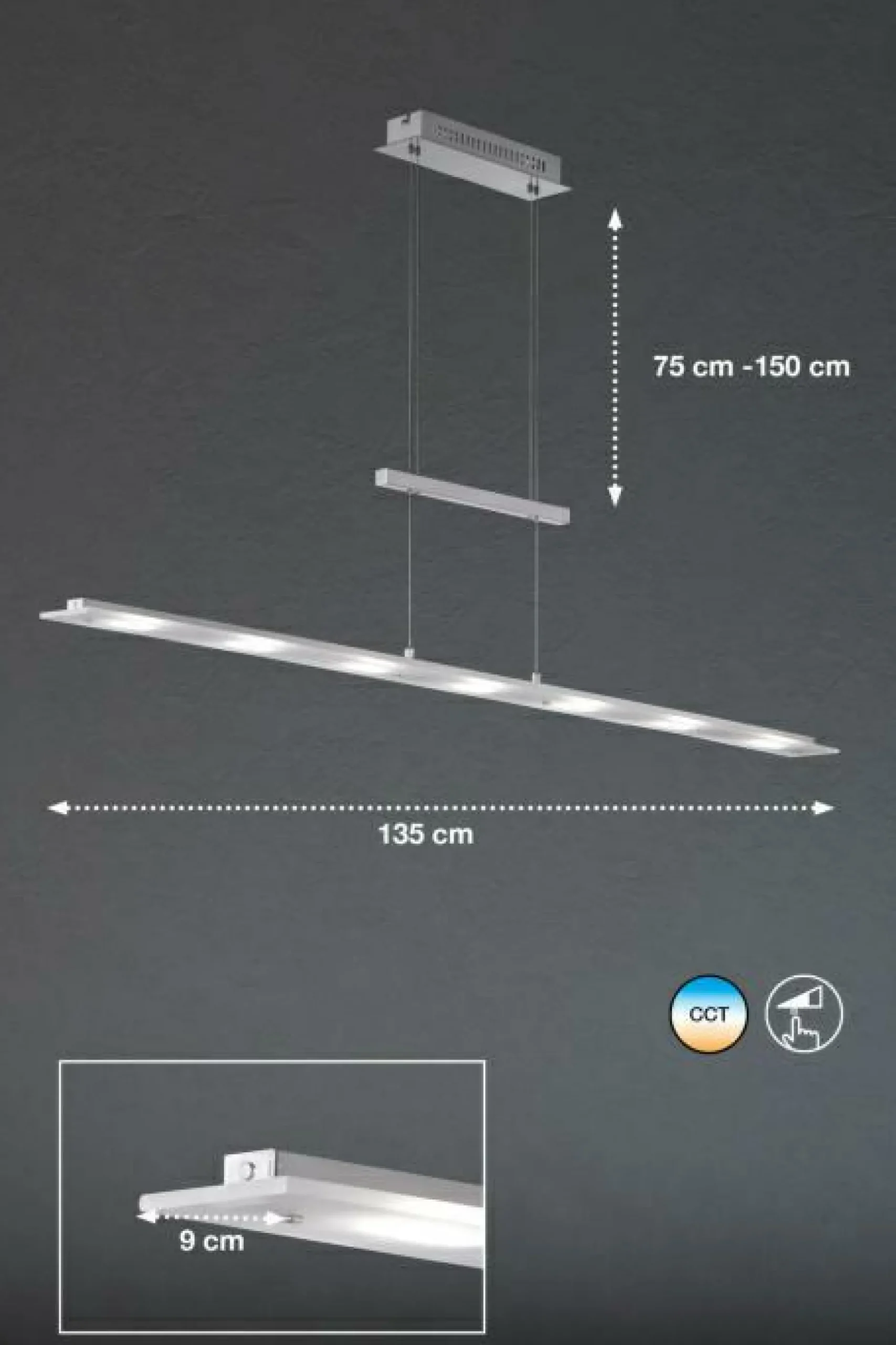 Um für fließendes und angenehmes Licht zu sorgen sind Pendelleuchten ideal. Nicht nur, dass Sie die Höhe verstellen können, Sie können mit Pendelleuchten aus dem Ostermannhaus auch für On-Point-Beleuchtung sorgen. Der Mix aus kaltem Metall und hellem Glas ist hier einfach fantastisch. Das Gestell wirkt unfassbar leicht und beschwert so nicht die Atmosphäre in Ihrem Wohnraum. Selbstverständlich ist die Tiefe der Pendelleuchte LARGO verstellbar, so können Sie jeder Zeit flexibel entscheiden ob die Lampe niedrig oder weiter hoch hängen soll. Durch die Dimmfunktion können Sie die Intensität des Lichtscheins einstellen und so maßgeblich die Stimmung in Ihrem Zuhause beeinflussen.