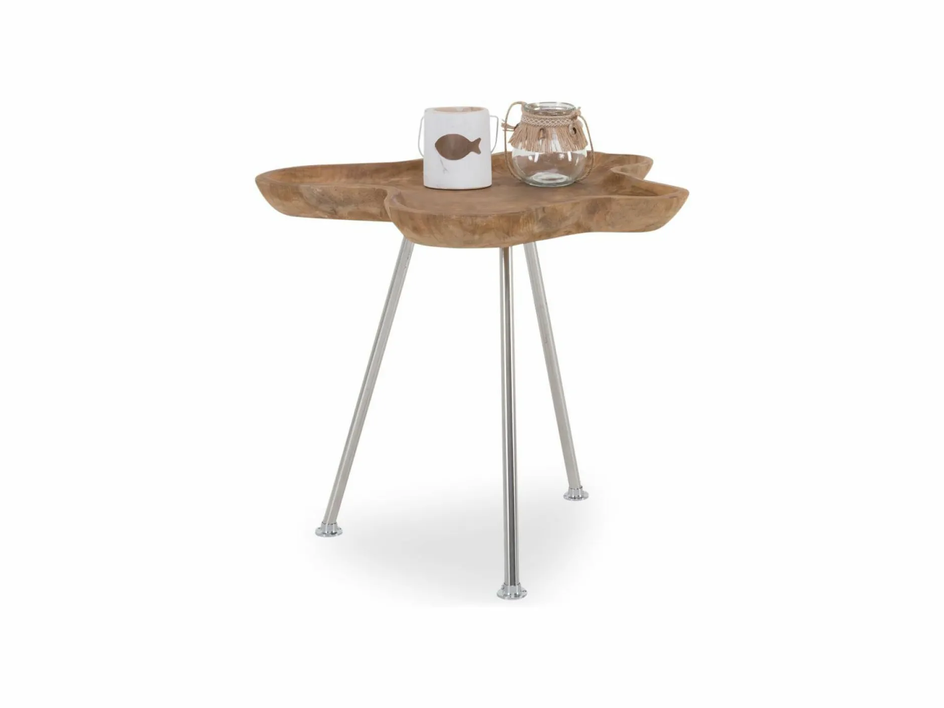 Der Beistelltisch aus dem Hause casa Nova ist der perfekte Begleiter für Ihr Zuhause. Der Tisch begeistert mit einem außergewöhnlichen Design, dass zu einem kleinen Highlight in Ihrem Wohnbereich wird. Der Tisch ist aus braunem Teakholz gefertigt. Das Gestell aus silberfarbenem Edelstahl rundet den Look dabei perfekt ab.
