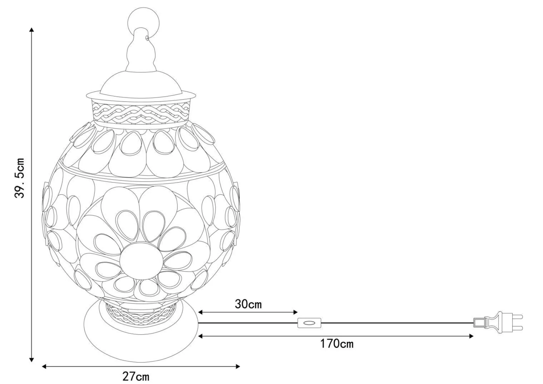 · Diese farbenfrohe Tischleuchte begeistert durch tolles Design. Ein oval förmigen Metallgehäuse mit schönen Verzierungen von Acrylkristallen bedeckt eine E27 Fassung. Diese überlässt Ihnen die Möglichkeit bis zu einer maximalen Leistung von 40 Watt, selbst über Lichtfarbe und Helligkeit zu bestimmen.
