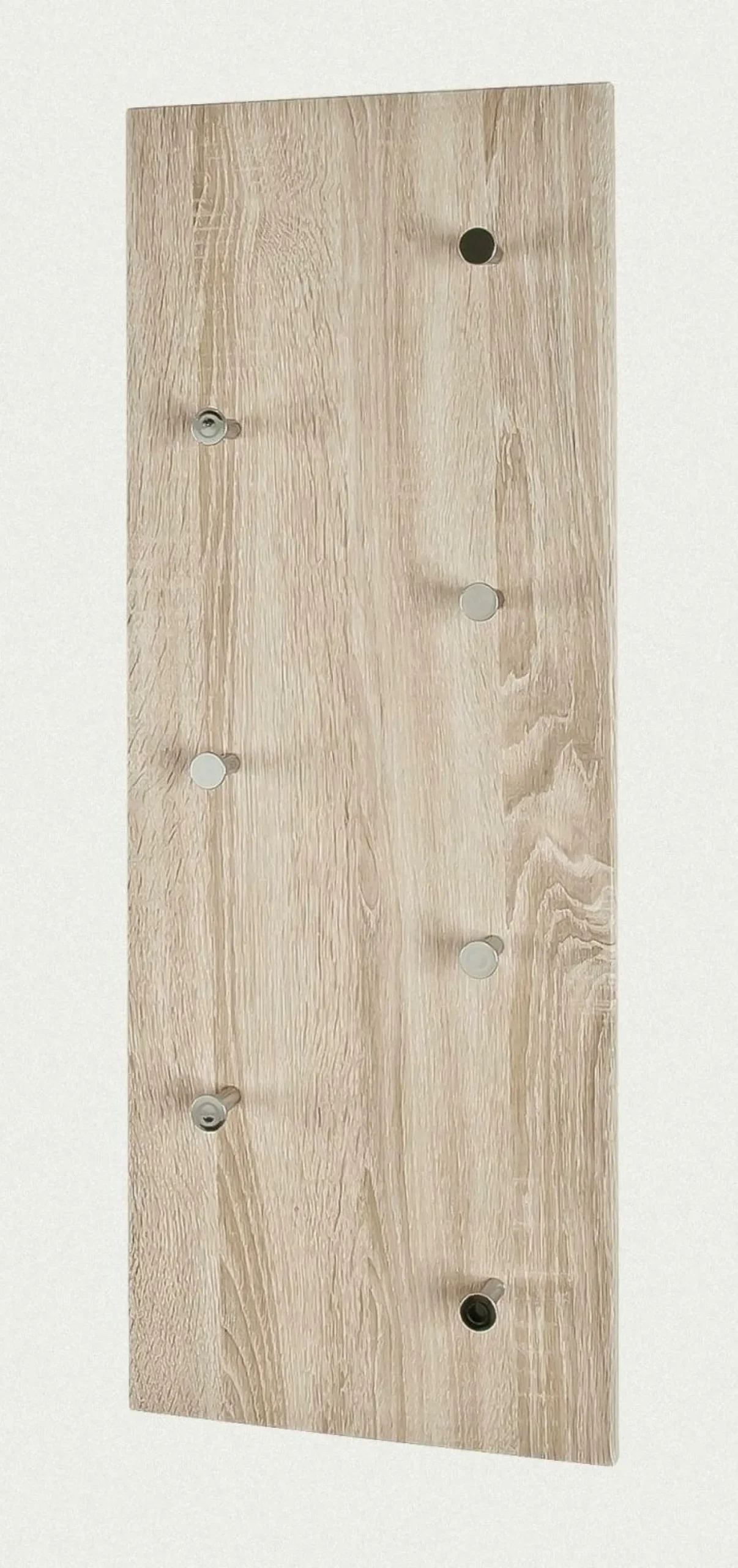 Diese Garderobe besteht aus MDF Dekor in Eiche und kommt mit schönen Garderobenknöpfen aus chrom-vernickeltem Stahl. Sie können diese Garderobe sowohl im Hochformat als auch im Querformat nutzen. Das dezente Design lässt sich in viele Einrichtungsstile integrieren.