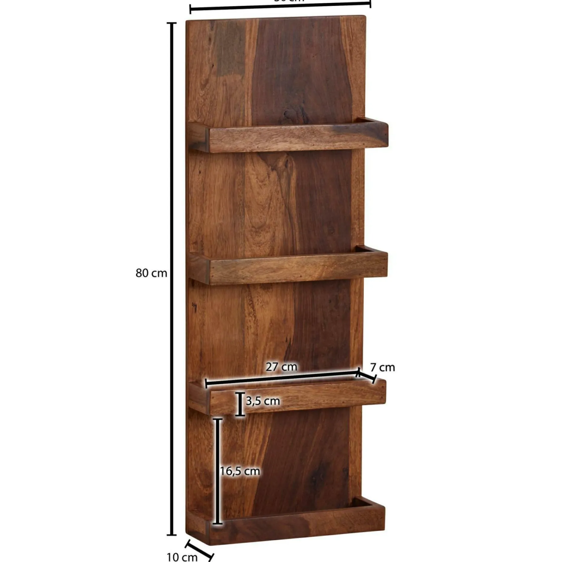 · Abmessungen – Innenabmessungen je Fach (BxHxT): 27 x 3,5 x 7 cm, Holzstärke: ca. 1,5 cm.