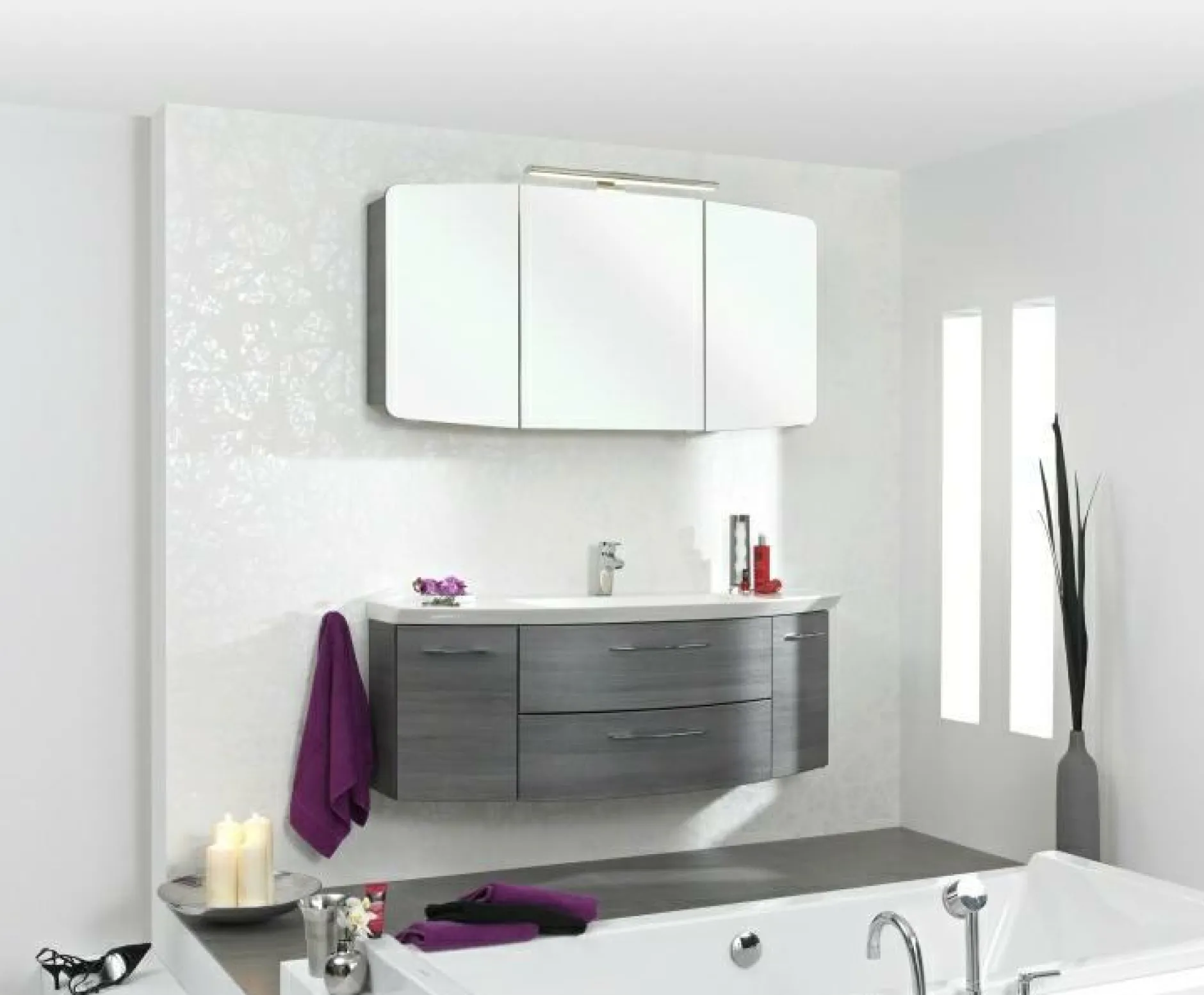 Preisgleich ist das Bad in 11 Front- und Korpusfarben planbar. Bitte rufen Sie uns hierzu an.