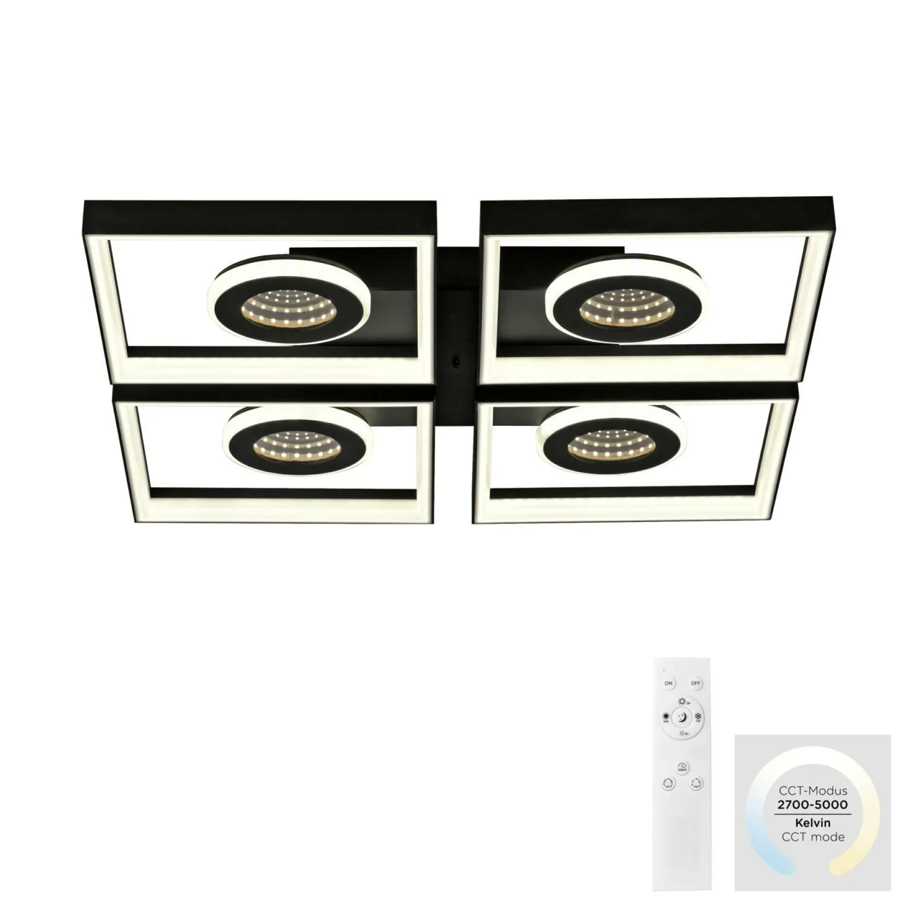 Lassen Sie mit dieser Deckenleuchte Ihre Einrichtung erstrahlen. In der Deckenlampe kommen alle Qualitäten und Besonderheiten, die die Marke Paul Neuhaus ausmachen, zusammen. Das hübsche Design der Leuchte fügt sich perfekt in jede Einrichtung ein und spendet dabei gemütliches Licht für ein tolles Wohnambiente. Die Lampe ist für die Verwendung von Leuchtmitteln mit LEDF-Sockel konstruiert. Sie hat sowohl ein Breitenmaß von insgesamt 53 cm als auch ein Längenmaß von 53 cm und ein Höhenmaß von 6,2 cm. Ihr persönliches Wohlfühlkonzept wird durch das moderne Design zusätzlich bereichert. Auch auf die Materialqualität legt der Hersteller besonderen Wert und verwendet für die Deckenlampe Metall. Die Deckenlampe kann sich perfekt in Ihr Zimmer integrieren und erschafft ein wunderschönes Flair. Sie harmoniert aufgrund ihrer hervorragenden Optik mit beinahe jedem Einrichtungsstil und kreiert dadurch eine Atmosphäre zum Wohlfühlen. Die Deckenlampe besticht nicht nur mit einem schönen Licht, sondern erfüllt auch eine dekorative Funktion.
